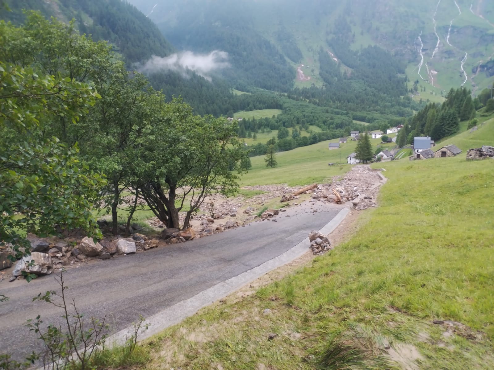 SAN DOMENICO -29-06-2024-- Il forte nubifragio che ha colpito la val Divedro intorno alle ore 17 ha fatto disastri specialmente a San Domenico, verso Ponte Campo, sulla strada che va al Veglia.