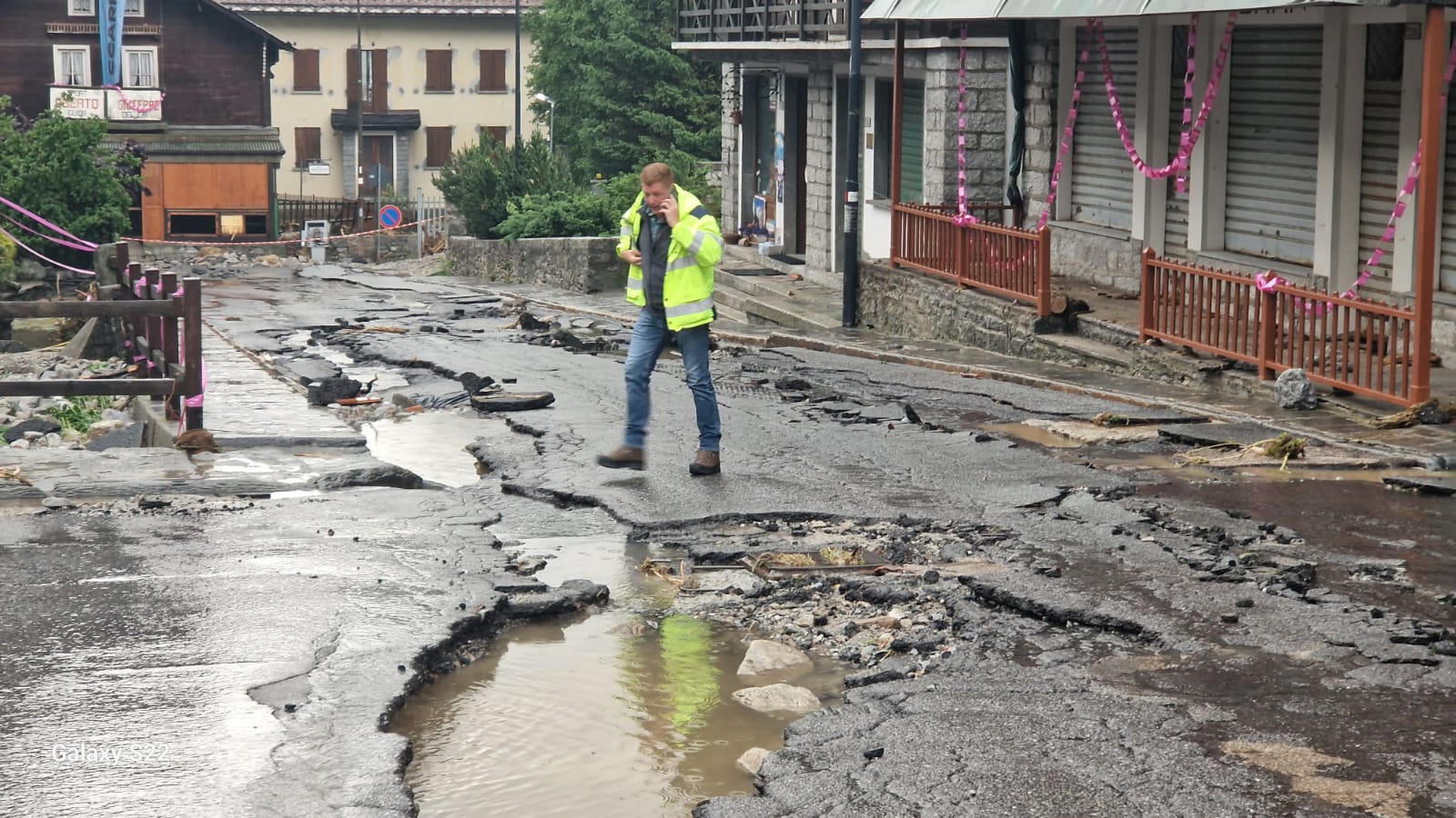 MACUGNAGA- 30-06-2024-- Sono impressionanti le immagini che giungono dal centro di mcugnaga, dove è esondato il rio Tambach riversando detriti e fango ovunque.