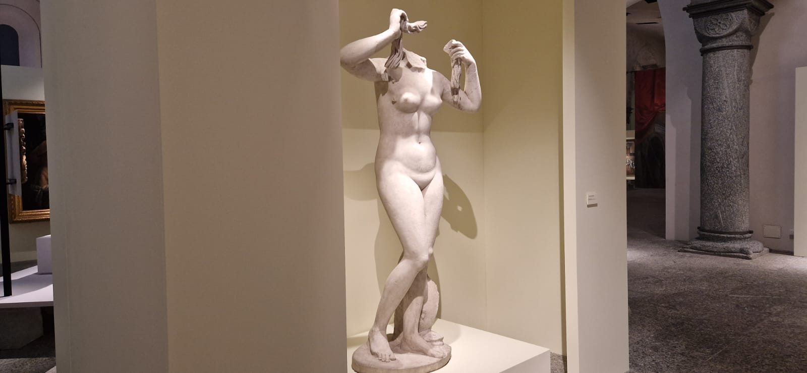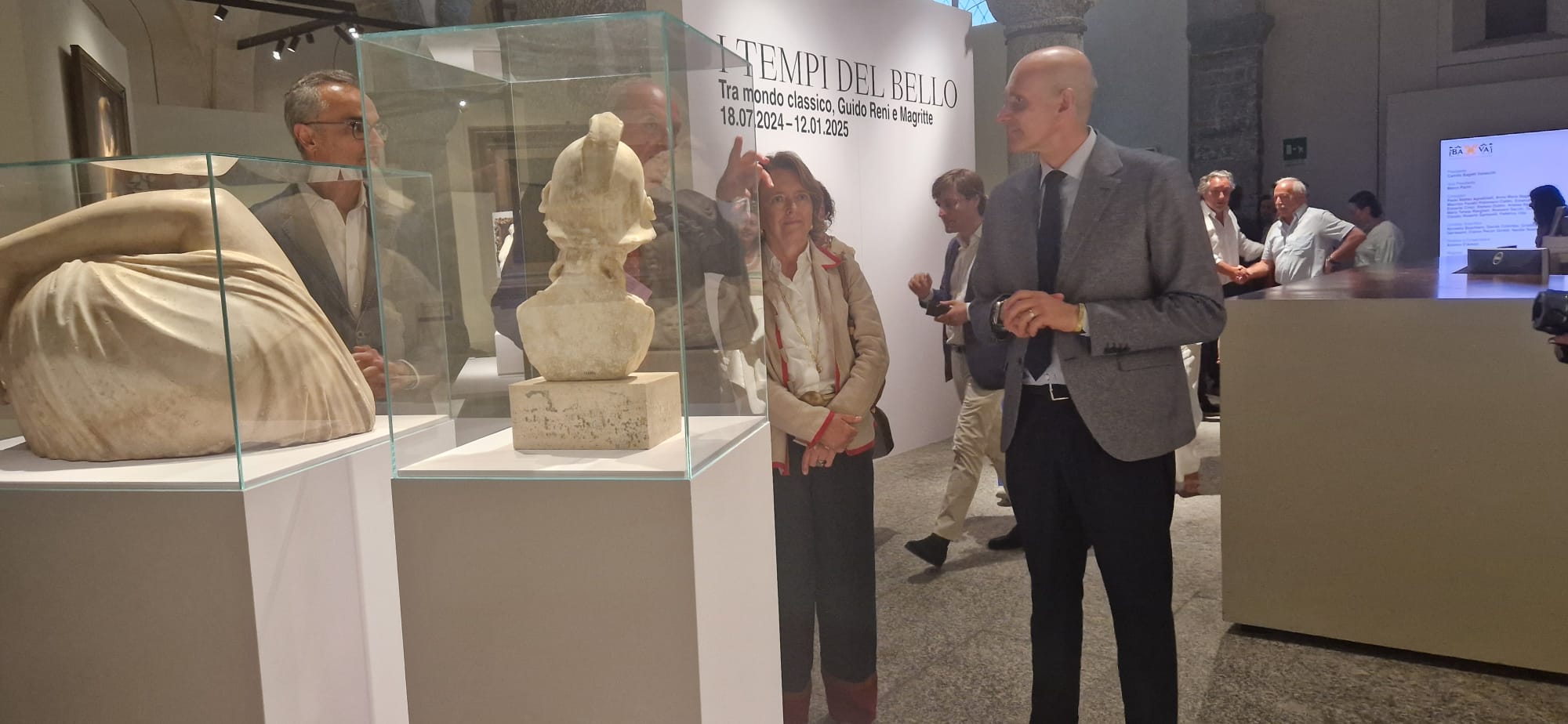 DOMDOSSOLA - 18-7-2024 -- “I tempi del Bello. Tra mondo classico, Guido Reni e Magritte” s’intitola la nuova mostra che i Musei civici “Gian Giacomo Galletti” hanno inaugurato oggi al Museo di Palazzo San Francesco a Domodossola. La mostra è stata ideata e curata da Antonio D’Amico, Stefano Papetti e Federico Troletti e realizzata dal Comune di Domodossola in partnership con il Museo Bagatti Valsecchi di Milano e la Fondazione Angela Paola Ruminelli, con il patrocinio della Regione Piemonte e con il sostegno di Morgran Italia S.r.l., Findomo S.r.l., Ultravox S.r.l., Studio specialistico ABC. Si possono ammirare oltre quaranta opere, tra dipinti e sculture in marmo e bronzo, provenienti da importanti musei italiani e collezioni private. Si va dalle opere di Reni, Sironi, De Chirico e Magritte alle sculture romane; in mostra tra gli altri anche Ludovico Carracci, Rubens Canova e Campigli. Fino al 12 gennaio 2025 si possono ammirare oltre 40 opere tra dipinti e sculture in marmo e bronzo, provenienti da prestigiose collezioni private e importanti musei italiani. Il taglio del nastro è stato preceduto dalla tradizionale presentazione in Cappella Mellerio. Il curatore Antonio D’Amico era collegato in streaming per una lieve indisposizione. Camilla Bagatti Valsecchi, presidente del Museo Bagatti Valsecchi di Milano era presente al tavolo dei relatori insieme al sindaco Lucio Pizzi, all’assessore Daniele Folino, Maurizio Rogora della Ruminelli, e ai due curatori. L’allestimento della mostra è stato progettato da Studio Lys con il coordinamento di Matteo Fiorini, il progetto illuminotecnico è di LightScene Studio con Riccardo Rocco e Luca Moreni, mentre l’illuminazione è stata aggiornata e realizzata in collaborazione con Viabizzuno. La mostra è accompagnata da un catalogo edito da Sagep Editori d’Arte.