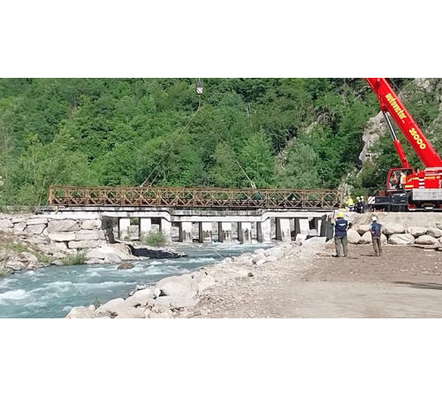 Foto: il ponte bailey sul Bogna collocato nei giorni successivi alla frana