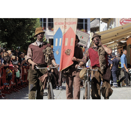 Proprio per non dimenticare questa realtà che la Valle Vigezzo ha saputo così bene custodire, abbiamo chiesto di poter ospitare, nelle vetrine che si affacciano sull’itinerario della sfilata, proposte a tema e l’immagine di piccoli spazzacamini che raccontano la loro storia. La figura è ripresa dal monumento a loro dedicato a Malesco.
