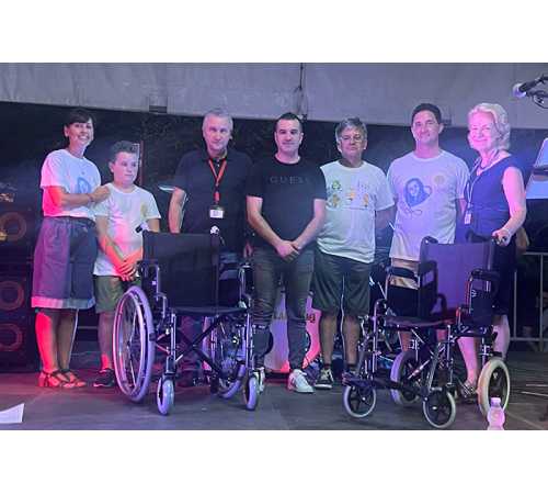 MONTECRESTESE -27-08-2024-- Salvatore Ranieri, il cantante della solidarietà, ha donato due carrozzine per il trasporto di malati oncologici alla Lega Italiana Lotta Tumori del Vco.