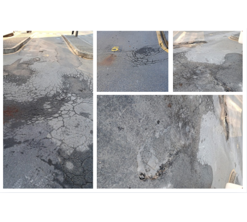 DOMODOSSOLA - 6-11-2024 -- Problemi al parcheggio dell'autobus in via Bonomelli a Domodossola. Come la foto esplicitano chiaramente, buche e crepe caratterizzano l'asfalto dove passano le corriere. Una situazione che va avanti da diversi giorni.