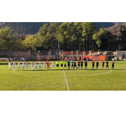 OMEGNA- 10-11-2024-- In trasferta sul campo dell' Omegna la Juve Domo si porta in vantaggio dopo dieci minuti, quando viene concesso ai granata un calcio di rigore che porta anche all' espulsione di Donzelli che commette fallo su Zani.