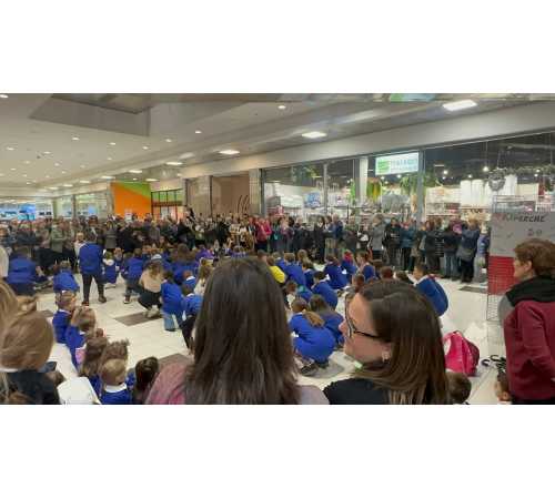 CREVOLADOSSOLA - 12-11-2024 -- Lo hanno battezzato "Io leggo perchè show" il flashmob che questa mattina all'Ossola Outdoor Center ha coinvolto gli scolari della primaria di Preglia che si sono esibiti cantando e danzando tra gli applausi di un pubblico felice di fare il tifo per loro. La scuola di Crevola aderisce infatti all'iniziativa nazionale "Io leggo perchè" che coinvolgendo 20mila scuole promuove la lettura tra i giovanissimi, ricordandosi, come recita lo slogan scelto quest'anno che "Il futuro inizia con un libro". Chiunque può donare un libro alla biblioteca scolastica recandosi presso una delle librerie aderenti, che in Ossola sono la "Grossi" di Domodossola, la "UBIK" a Crevoladossola e "La Pagina" a Villadossola.