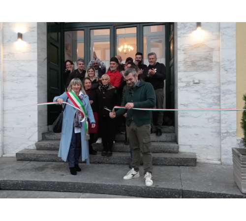 PIEVE VERGONTE - 18-11-2024 -- Per un piccolo paese, tornare ad avere un locale al servizio della comunità è fondamentale, significa far ritornare la vita sociale a rifiorire. Non è poco, soprattutto quando quel vecchio "circolo" è un simbolo della storia degli ultimi cento anni della comunità. A Pieve Vergonte ha riaperto dopo prolungata chiusura il ristornate e bar del centro Massari, "M'ama Rosa" il nome scelto dal nuovo gestore, Mauro Colecchia, che ha rilevato l'attività adiacente al teatro. Attività che il Covid aveva costretto alla chiusura. Una grande e inattesa partecipazione popolare è intervenuta domenica all'inaugurazione, col taglio del nastro al quale ha preso parte la sindaca Maria Grazia Medali che ha ricordato l'importanza storica di quell'edificio per la comunità di Pieve Vergonte, firmato dall'architetto Paolo Vietti Violi, un maestro dell'architettura del '900. Il complesso del cinema- teatro con annesso "circolo", era parte integrante di quello stabilimento chimico attorno al quale il paese è vissuto.