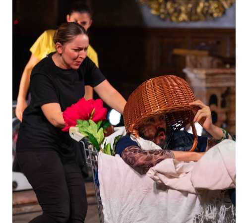 In scena cinque attori che interpretano sedici personaggi, diretti da Luca Savani che interpreta la commedia in chiave pop; cambi a vista, colori sgargianti, scene paradossali, ma soprattutto grandissime risate.