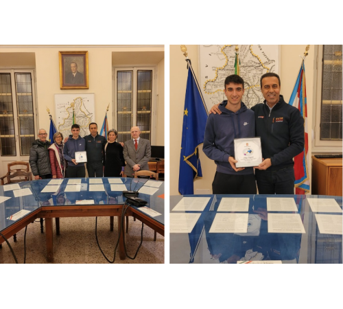 DOMODOSSOLA - 27-11-2024 -- Nel pomeriggio di ieri, 26 novembre, il sindaco domese Lucio Pizzi e l’assessore allo Sport Gianluca Iervasi hanno consegnato un riconoscimento al valente bocciofilo ossolano Diego Verganti, giovanissimo atleta (classe 2006) che si è distinto per una serie di importantissime prestazioni tra cui il primato del mondo di tiro progressivo e, ancor più di recente, la conquista della Coppa Europa in Croazia. Il campione sarà impegnato, nel fine settimana, per i Campionati Italiani e lunedì prossimo partirà alla volta di Portorico per i Campionati Mondiali. "A lui, con orgoglio, vanno i nostri più affettuosi auguri", la nota dell'amministrazione, auguri ai quali si unisce anche la rezazione di News24.