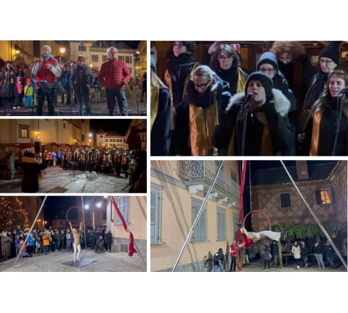 SANTA MARIA MAGGIORE - 6-12-2024 -- Con lo spettacolo dalle atmosfere circensi, canzoni natalizie e tanta gente in piazza, nella serata di giovedì s'è alzato il sipario sulla 25ma edizione del Mercatino di Natale di Santa Maria Maggiore.