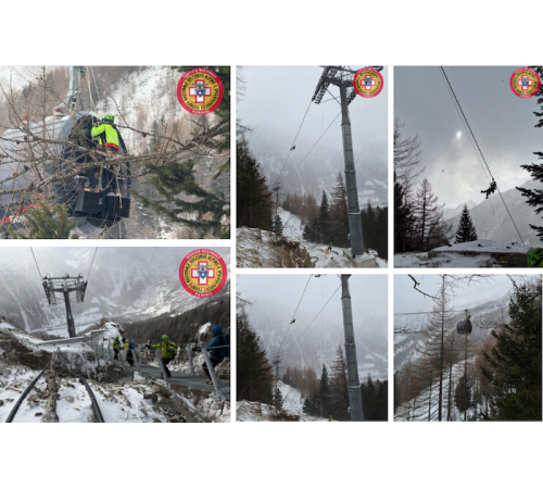 Con condizioni meteo al limite dovute alle raffiche di vento fino a 90 km/h, e sotto l'attento controllo degli ingegneri del Ansfisa che cronometravano affinché tutto si svolgesse nei termini previsti, due squadre del Soccorso Alpino delegazione Valdossola, hanno scaricato tre cabine che si simulava bloccate in linea.