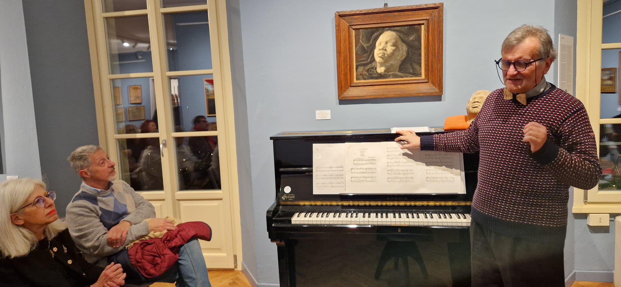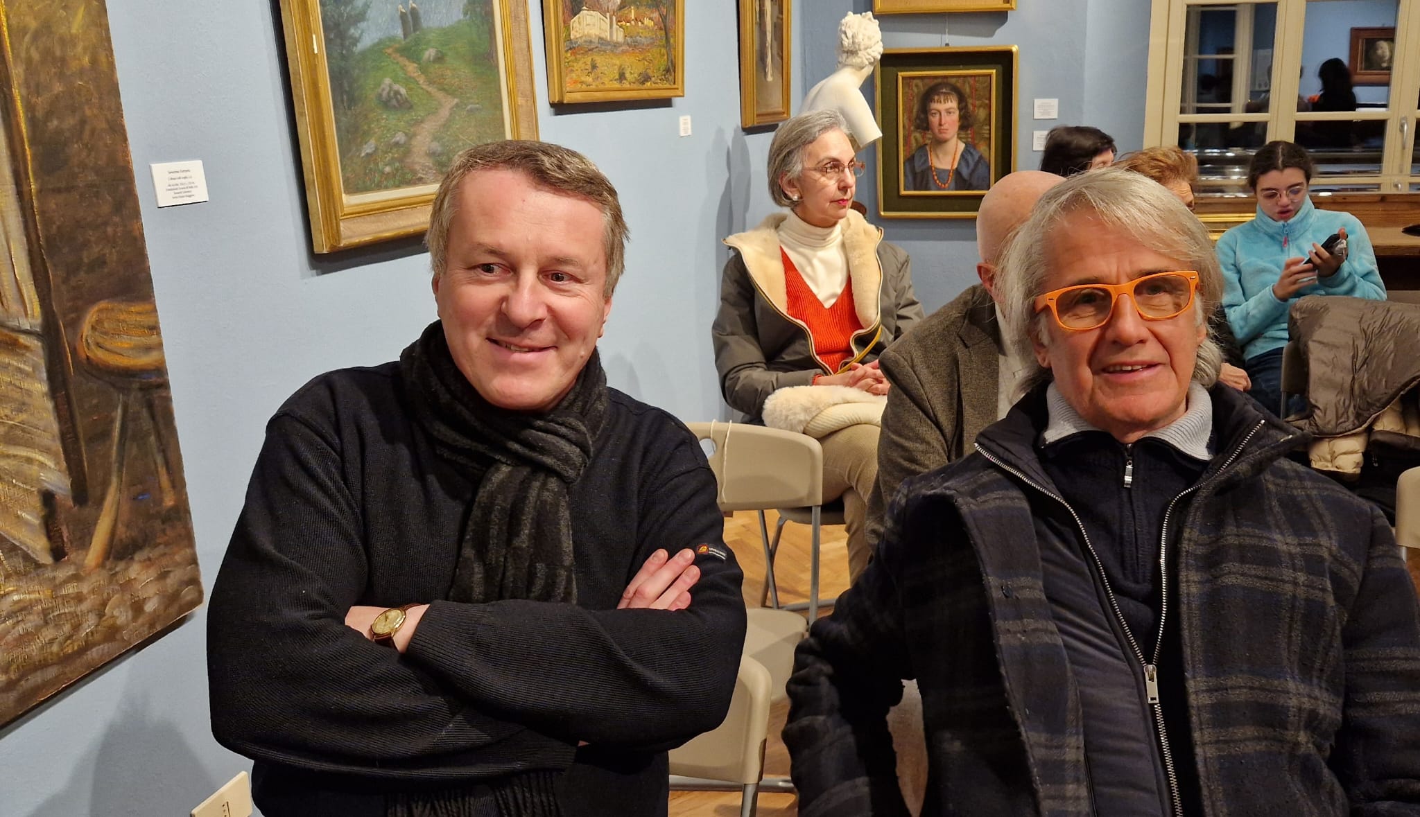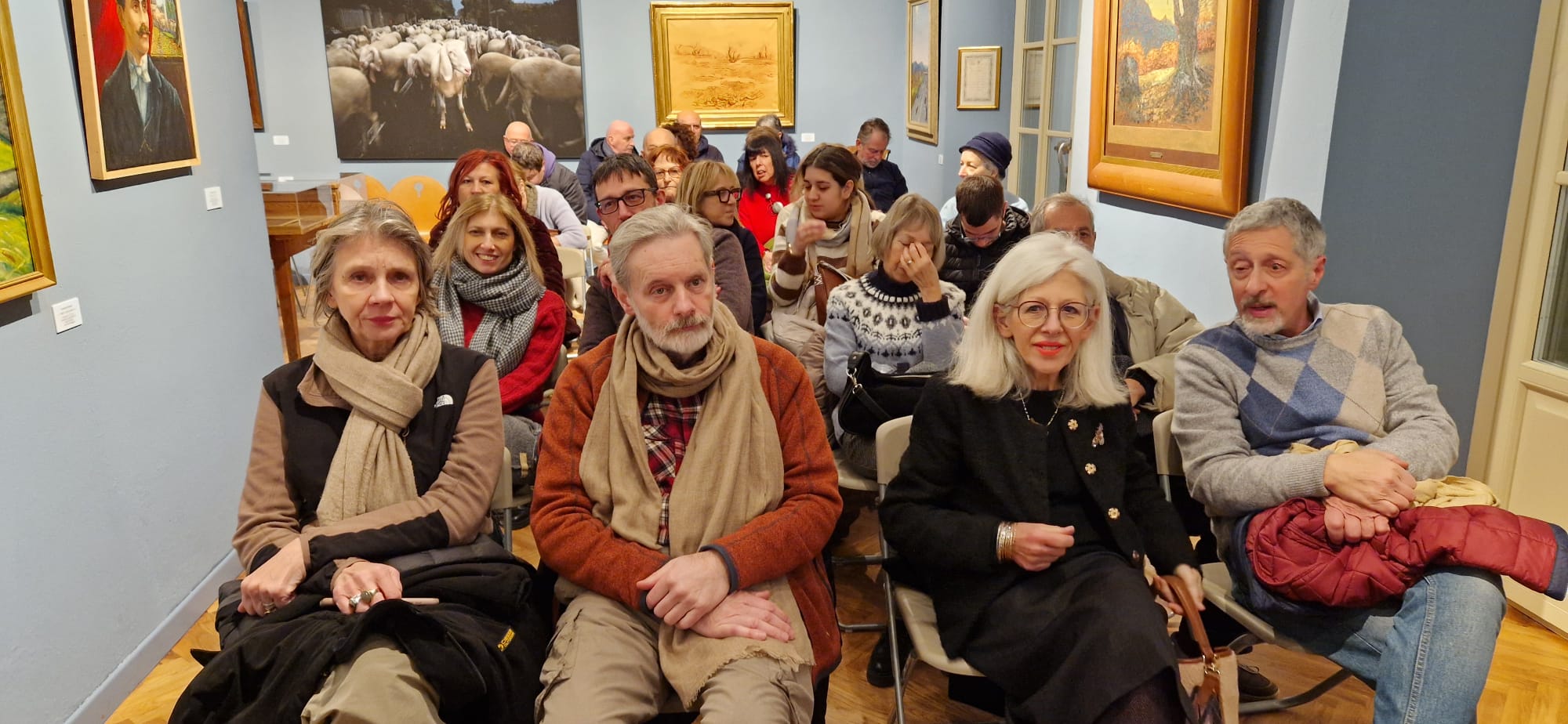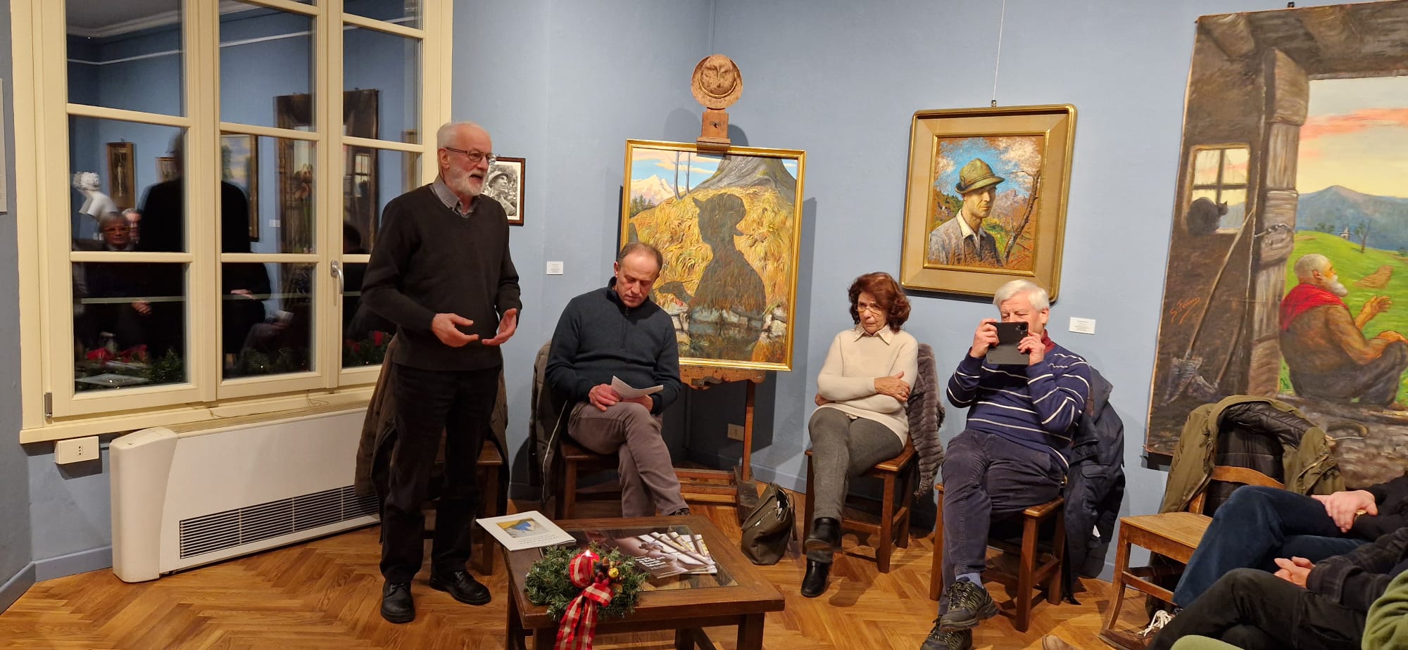 SANTA MARIA MAGGIORE - 4-1-2025 -- Un successo ieri sera la presentazione della mostra “Allievi Maestri Benefattori in dialogo con il contemporaneo”, un omaggio ai tre pittori “di casa” alla Scuola vigezzina, con tre artisti in residenza che dialogano con le opere della Pinacoteca Rossetti Valentini a Santa Maria Maggiore. La Fondazione Rossetti Valentini ha elaborato una mostra inedita: propone infatti un dialogo tra le opere di Alfredo Belcastro, Severino Ferraris e Alessandro Giozza e la contemporaneità di Giovanni Frangi, Antonella Gerbi e Jill Mathis. Curata da Lorella Giudici, la mostra sarà aperta fino al 1° giugno e l’hanno presentata l’architetto e storico Gim Bonzani, il critico d’arte Giuseppe Possa, Anna Gnuva, sorella di Anselmo Gnuva che fu presidente della Scuola di Belle Arti Rossetti Valentini, moderati dall’attuale presidente Bruno Testori. Il maestro Roberto Bassa ha accompagnato al pianoforte la presentazione con un concerto ispirato dalle opere degli artisti ora in mostra. Bruno Testori, presidente della Scuola di Belle Arti Rossetti Valentini di Santa Maria Maggiore, spiega: «In realtà la mostra era stata aperta il 6 dicembre ma abbiamo posticipato la presentazione degli artisti in esposizione perché non era possibile effettuarla nel momento dei mercatini di Natale. Esponiamo le collezioni di Belcastro e Ferraris che ci sono state donate dagli stessi, con un omaggio ad Alessandro Giozza, anche lui maestro e amico della scuola, e li mettiamo a confronto con artisti contemporanei residenti. Questi sono Giovanni Frangi, che presenta un’opera pittorica messa in confronto con le opere di Alfredo Belcastro, poi una fotografia di Jill Mathis a confronto con le opere di Severino Ferraris e la scultura di Antonella Gerbi, in dialogo con le opere di Alessandro Giozza. La presentazione di oggi vuole essere un ricordo legato allo spirito che il fondatore Giovanni Maria Rossetti Valentini è riuscito a tramandare e trasmettere ai suoi allievi e discendenti che hanno proseguito il percorso della scuola portandola fino ai giorni nostri e riuscendo a mantenerla attiva. È l’unica rimasta in tutto l’arco alpino». Per tutta la primavera 2025 la mostra sarà aperta sabato e domenica dalle ore 10 alle 12 e dalle 15 alle 17.