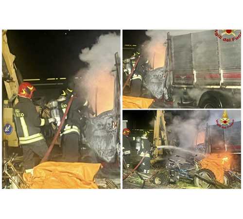 MONTECRESTESE- 04-02-2025-- Intervento dei vigili del distaccamento di Domodossola con in supporto l'autobotte questa sera alle 20.30 circa per un incendio in un'azienda agricola nel comune di Montecrestese. Ad andare a fuoco, a seguito dell'avvertimento di un boato nella zona, un autocarro.