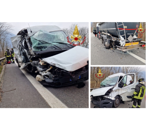 ORNAVASSO - 19-2-2025-- Un incidente stradale si è verificato oggi nel primo pomeriggio sulla strada statale 33 del Sempione, al km 101+600 in direzione sud, all'altezza di Migiandone, nel comune di Ornavasso. Un furgone e un autoarticolato si sono tamponati, ma fortunatamente non ci sono state conseguenze per i conducenti coinvolti.