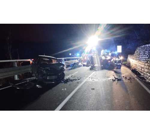VIGEZZO- 22-02-25-- Incidente stradale sulla SS 337 della val Vigezzo sabato sera. Due autovetture si sono scontrate frontalmente , una polo e una mini Cooper. Quattro le persone trasportate al DEA di Domodossola. Al vaglio dei Carabinieri la dinamica dell'incidente Per circa due ore la strada é rimasta chiusa al traffico.