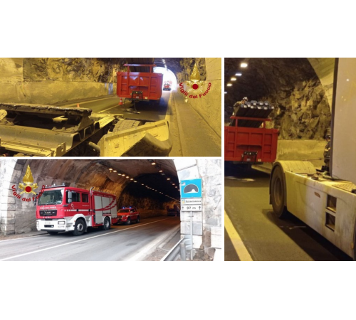 VARZO - 24-2-2025 -- Poteva finire in tragedia l'incidente avvenuto lunedì mattina nella galleria Balmalonesca sulla statale 33 del Sempione. Un autoarticolato diretto verso nord ha perso il rimorchio carico di tondini d'acciaio per edilizia, che è finito nella corsia opposta fortunatamente deserta in quel momento. Sul posto una squadra di vigili del fuoco del distaccamento di Domodossola per la messa in sicurezza dei mezzi e la collaborazione allo spostamento del rimorchio carico di ferro con l'ausilio di una gru del soccorso stradale. Sul posto Anas e i carabinieri. La strada statale è stata chiusa completamente per circa un'ora e, riaperta a senso unico alternato fino alla completa rimozione del rimorchio incidentato.