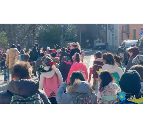SANTA MARIA MAGGIORE - 7-3-2025 -- Nella mattinata di ieri, giovedì 6 marzo, in occasione della festività di Sant'Albino, i bambini di Santa Maria Maggiore e delle sue frazioni hanno animato le vie del borgo con un "corteo rumoroso" per celebrare il risveglio della primavera.