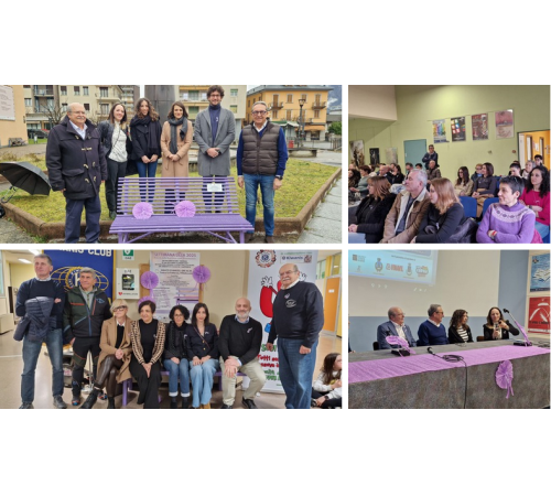 OSSOLA - 15-3-2025 -- Nell’ambito della “Settimana Lilla 2025. Disturbi della Nutrizione e dell’Alimentazione” ieri si è tenuta la posa e l’inaugurazione della panchina lilla presso l’Istituto Comprensivo Casetti di Crevoladossola. Oggi una panchina lilla è stata inaugurata anche presso il teatro La Fabbrica di Villadossola. L’iniziativa è stata organizzata dal Kiwanis Club Domodossola, da www.diariodiunbabyboss.com e dal Gruppo Tosco Marmi – Palissandro Marmi, il patrocinio del Comune di Villadossola, Vinavil, Comune di Crevoladossola e Cipir. Le panchine lilla sono il simbolo del sapersi mettere in ascolto per riconoscere il disagio giovanile che sfocia nei disturbi alimentari. Dopo l’inaugurazione della panchina a Villadossola, sempre alla Fabbrica, si è tenuto il convegno dal titolo “La bulimia e i disturbi alimentari”. Sono intervenuti Sofia Tagini (psicologa), Roberta Mandrini (nutrizionista), Davide Perego (fisioterapista), il sindaco Bruno Toscani, il presidente del Kiwanis Club di Domodossola, Federico Spinozzi e Tiziana Lilò (blogger). Una panchina lilla sarà inaugurata nel mese di aprile anche a Domodossola presso il liceo Spezia.