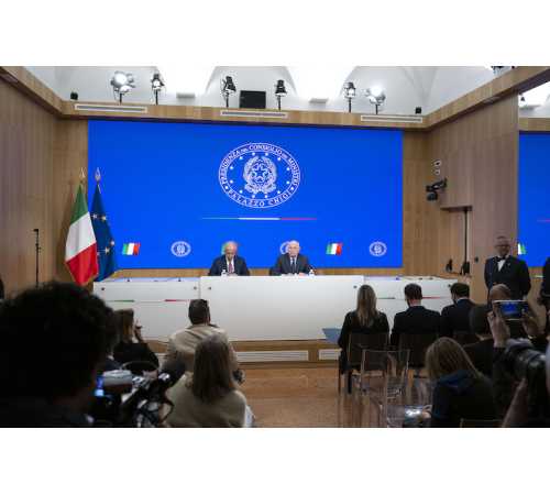 Foto: la conferenza stampa per illustrare il decreto con i ministri Piantedosi e Nordio