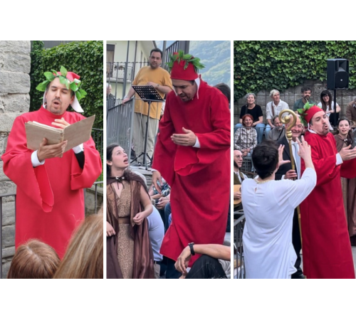 L’evento ha visto in scena Matteo Morigi, Matteo Minetti e Siria Giraldo assieme al gruppo Murmur Mori con Mirko Virginio Volpe e Silvia Kuro. Con la regia del bresciano Luca Savani gli artisti hanno messo in scena una scanzonata commedia sulle vicende della vita di Dante Alighieri incrociata con la vicenda della costruzione delle mura di Domodossola, e con un intero atto dedicato all’amore del sommo poeta per Beatrice Portinari.
