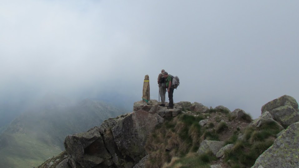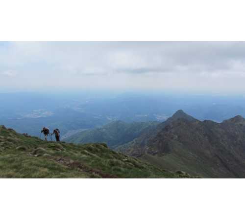 Un'ora e mezza dalle auto. Altro breve scollinamento e ripida salita alla Fontana dei Cacciatori e alla Bocchetta di Pissavacca, 1630 (poco più di un quarto d'ora). Di qui, finalmente, vediamo il Monte Barone, ancora lontano e leggermente incappucciato, nonostante la bella giornata. Pausa per ristorarci e, lungo una traccia su ripidi traversi per non perdere quota, raggiungiamo la Bocchetta di Ponasca, 1650. In direzione nord ovest percorriamo, su bel sentiero, la dorsale che ci porta in vetta, 2044 (un'ora e un quarto). Ci sono una piccola croce ed un ometto di pietra con rosa dei venti che descrive lo spettacolare panorama intorno a noi.