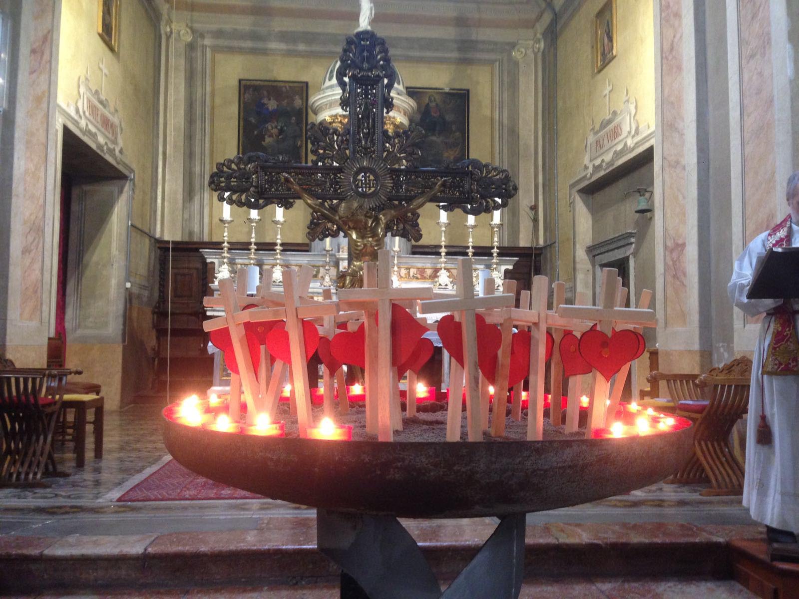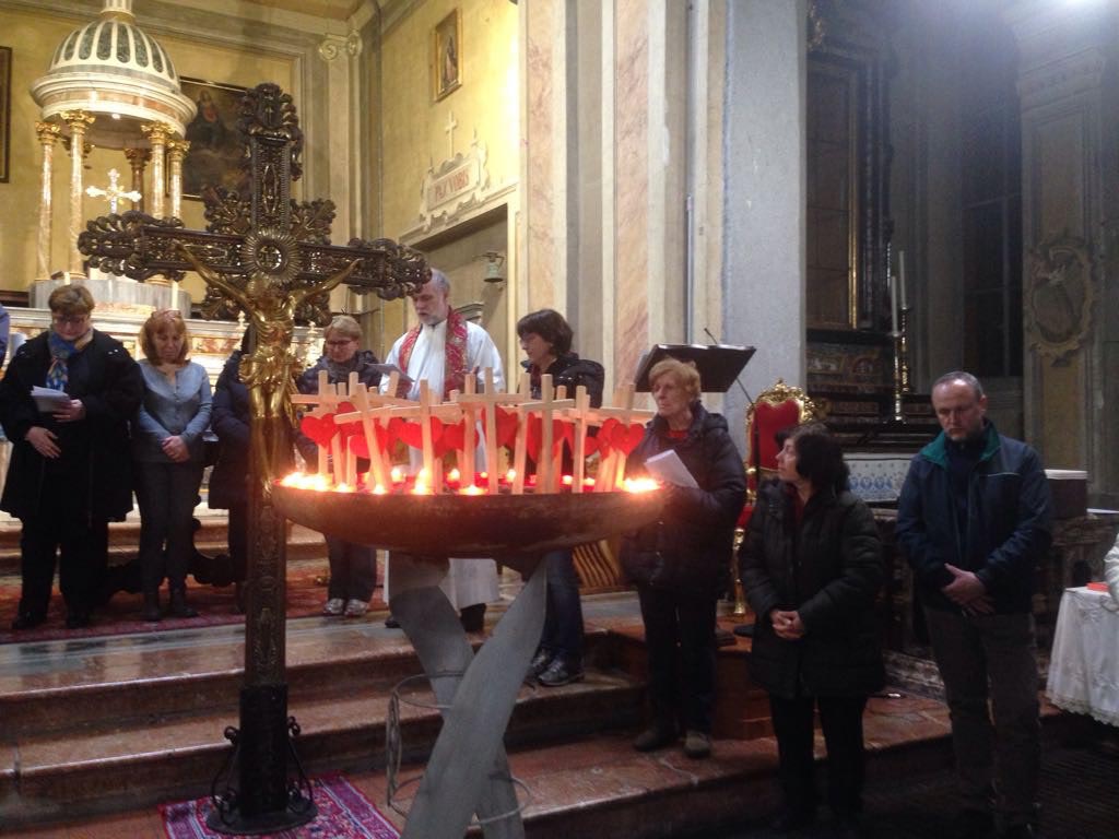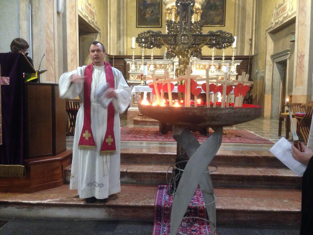 PREMOSELLO – 23-03-2017- Mercoledì sera si è svolta nella chiesa di Premosello la veglia di preghiera in ricordo dei missionari martiri. Questa settimana ricorre l’anniversario del martirio di mons. Oscar Romero, arcivescovo di san Salvador. Quest’anno sono 28 le persone che hanno subito il martirio in nome di Cristo. La veglia è stata presieduta dai parroci di Premosello don Ezio Rametti e di Villadossola Massimo Bottarel al momento di preghiera era presente anche il vicario territoriale dell'Ossola don Vincenzo Barone. In particolare sono stati ricordati i 28 tra laici e religiosi uomini e donne che hanno sacrificato la propria vita nel corso del 2016 e per ognuno di loro i fedeli hanno portato all'altare una piccola croce in legno con un cuore rosso ed è stato acceso un lumino. Durante la celebrazione intervallata da preghiere e canti sono state ricordate anche le drammatiche le situazioni delle comunità cristiane di Aleppo.
