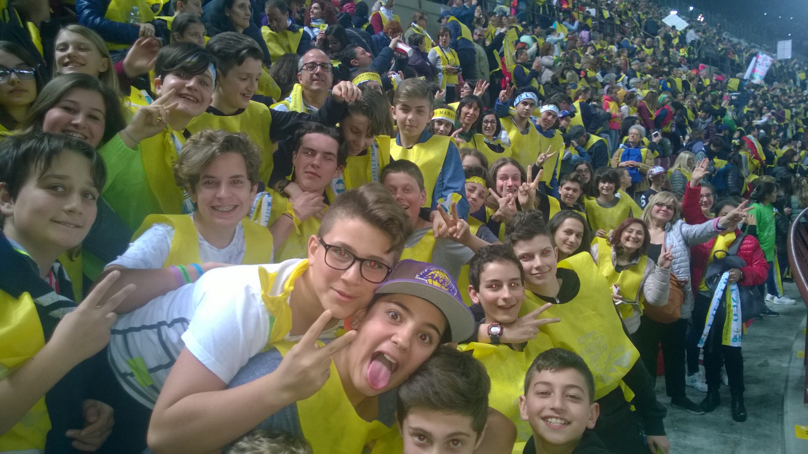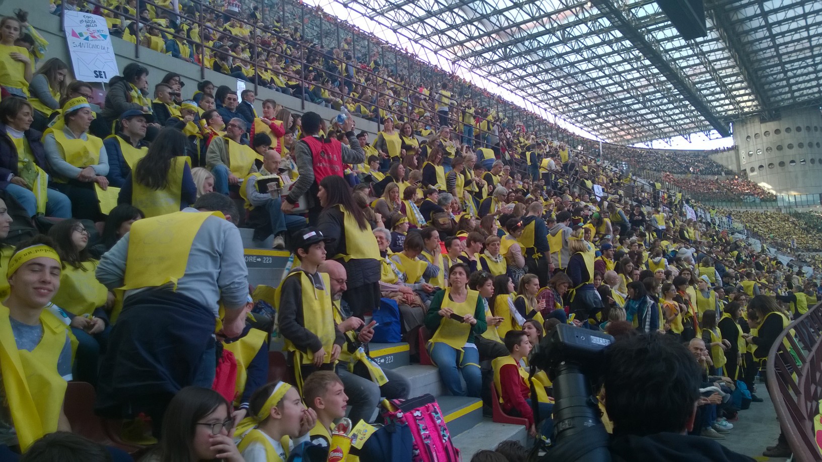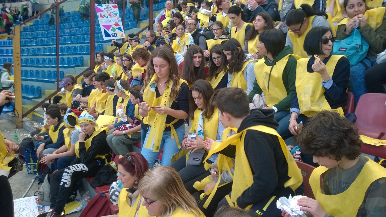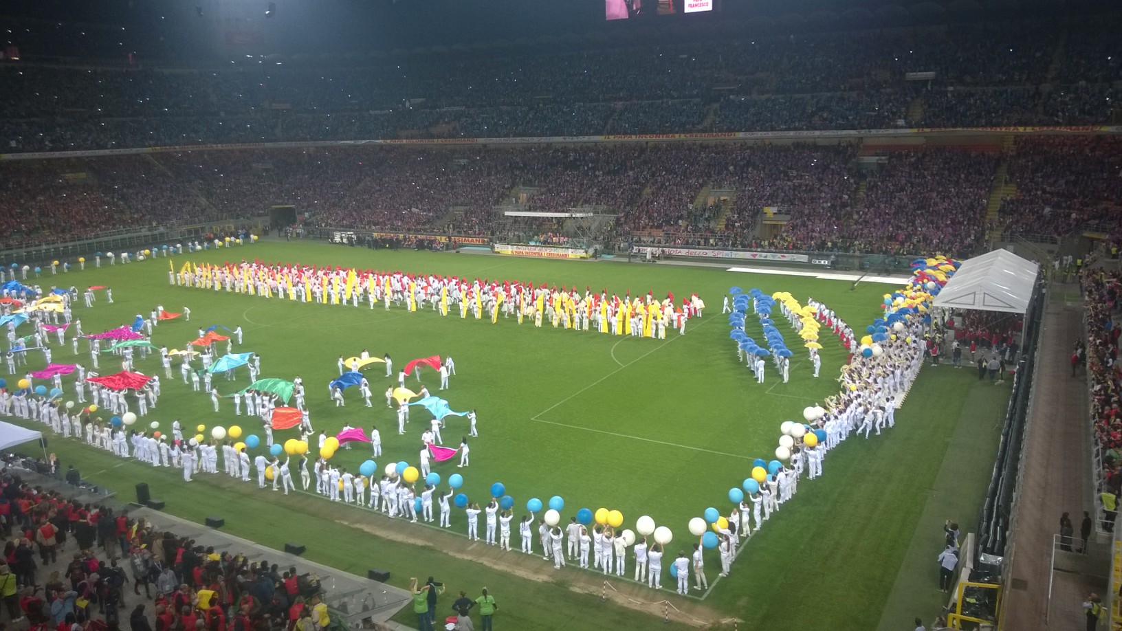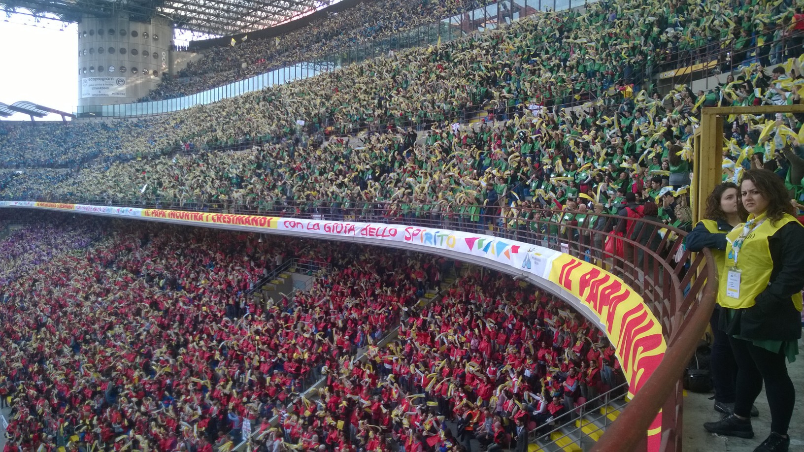 domesi della Statale e del Rosmini più qualche animatore del Liceo Sportivo Marconi-Galletti i presenti allo stadio San Siro di Milano per Papa Francesco: "L'occasione - spiegano i protagonisti- l'incontro con papa Francesco, semplice e toccante il suo discorso, incredibile e scenografica la location per gli 80.000 presenti totali. Baciati da un gran sole, dopo un momento di festa con band giovanili, il cantante Van des Fross e il comico Giacomo del trio Aldo-Giovanni-Giacomo finalmente l'arrivo di Francesco. L'importanza del dialogo con i nonni, il gioco sano, la condivisione e la solidarietà alcune delle tematiche affrontate. "Si arriva alla fede solo partendo dalla realtà, approfondendo seriamente ciò che quotidianamente si vive" ha detto. In serata, il rientro a Domo, nella straordinaria ordinarietà della vita".