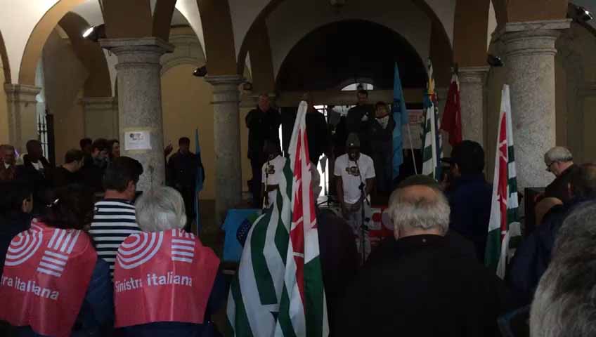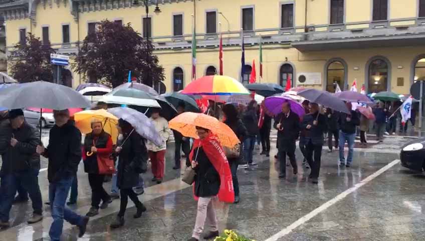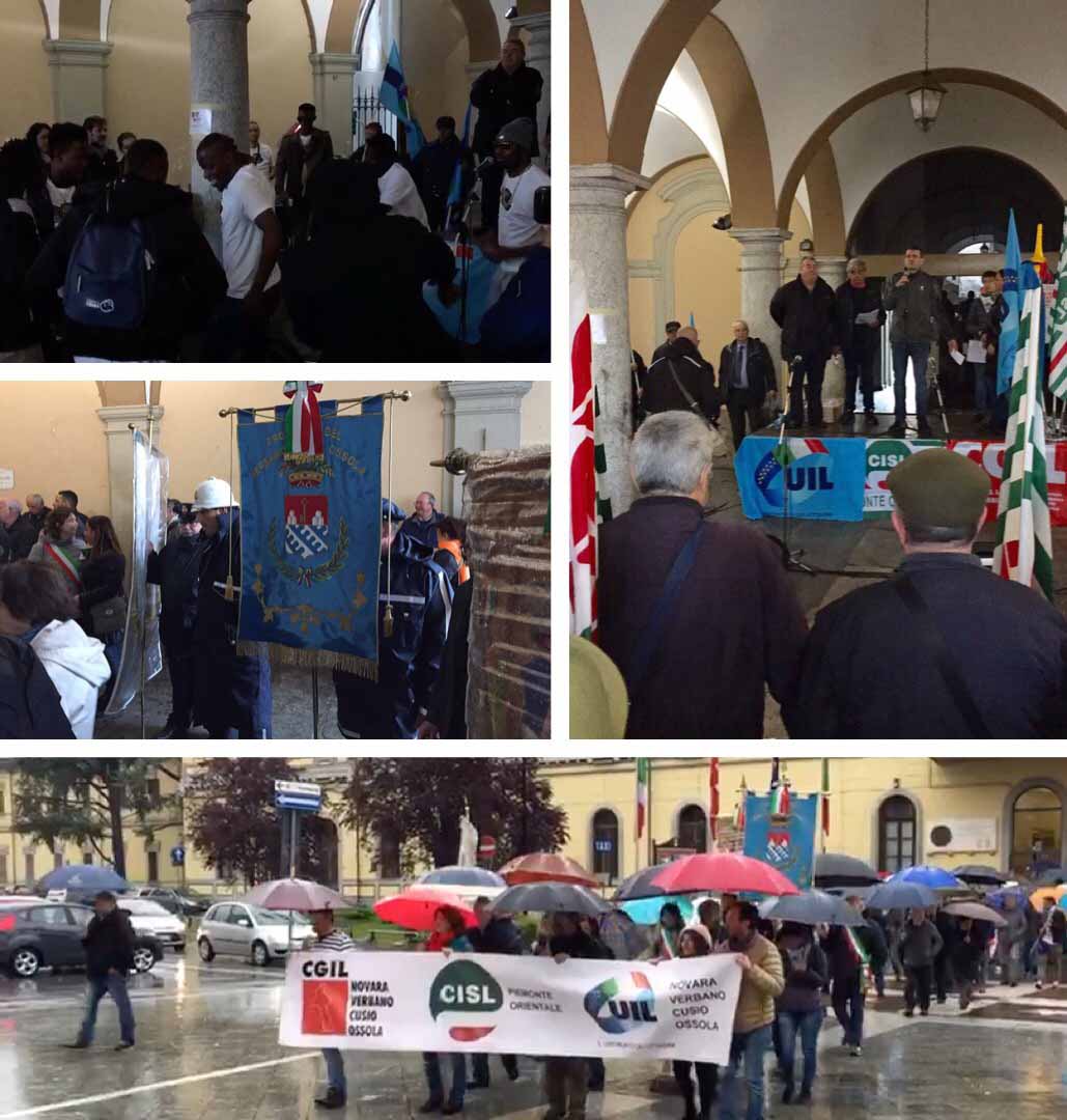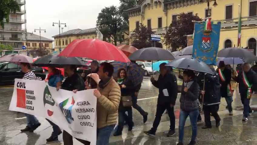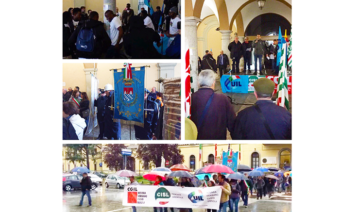 si è svolta lunedì mattina a Domodossola con il ritrovo dei partecipanti, nonostante la pioggia, in piazza Matteotti , la sfilata, il comizio in piazza Mercato ed un momento di intrattenimento con musica e balli fatti da alcuni dei richiedenti asilo del territorio: “Fatichiamo sempre di più – hanno spiegato dal palco- perchè è una festa che cade in un clima di contrapposizione, che ancora quest'anno vede protagonista il lavoro, le nostre radici, esclusivamente per le grosse crisi che continuano a cadere sul territorio ed a livello nazionale. Proprio perchè noi parliamo di radici e futuro vogliamo provare a dare nel nostro piccolo un segnale diverso a quello che è il primo maggio, e lo abbiamo fatto chiedendo a questi ragazzi di partecipare, fanno parte di un laboratorio artistico dei ragazzi immigrati del nostro territorio”.