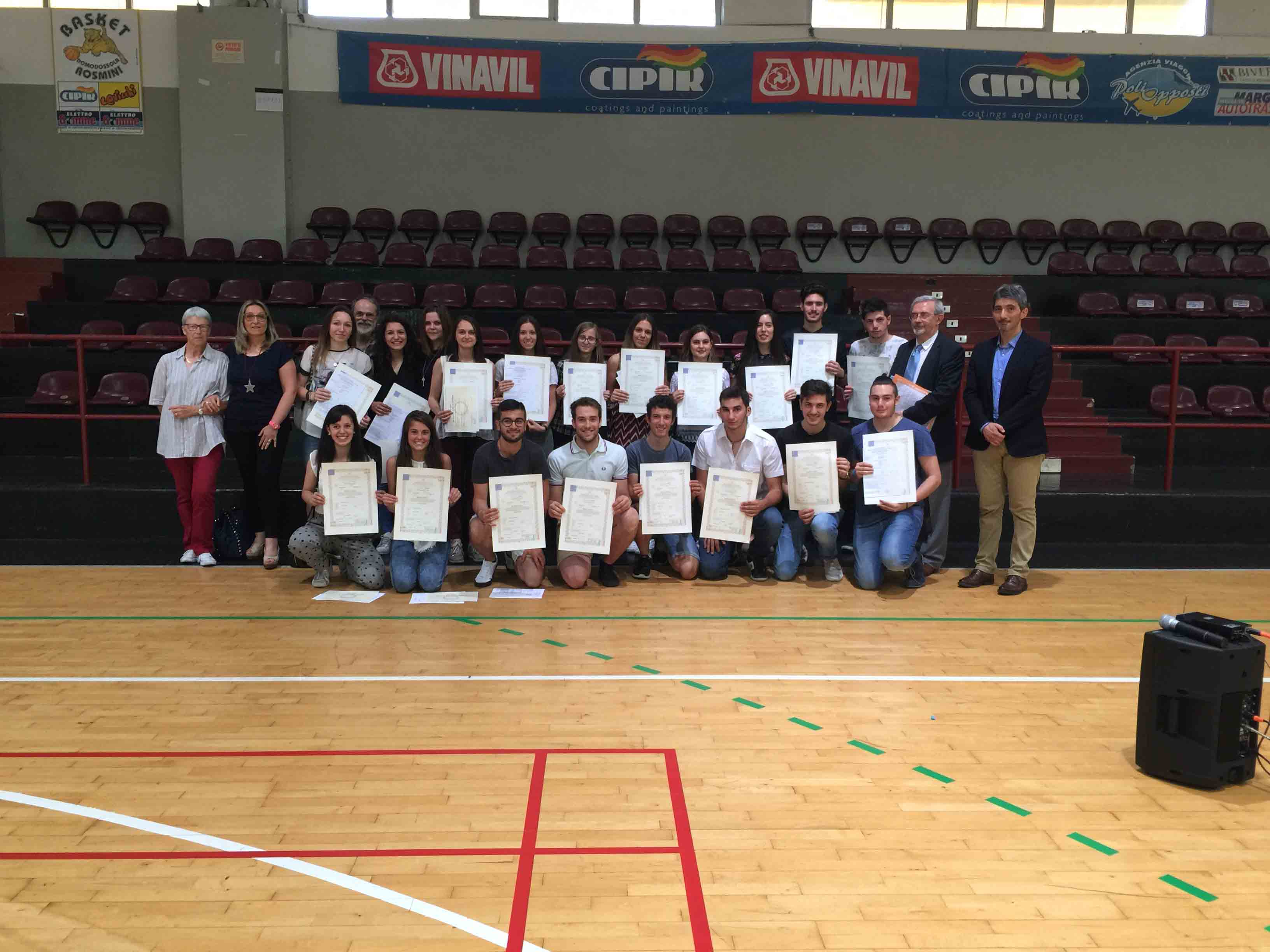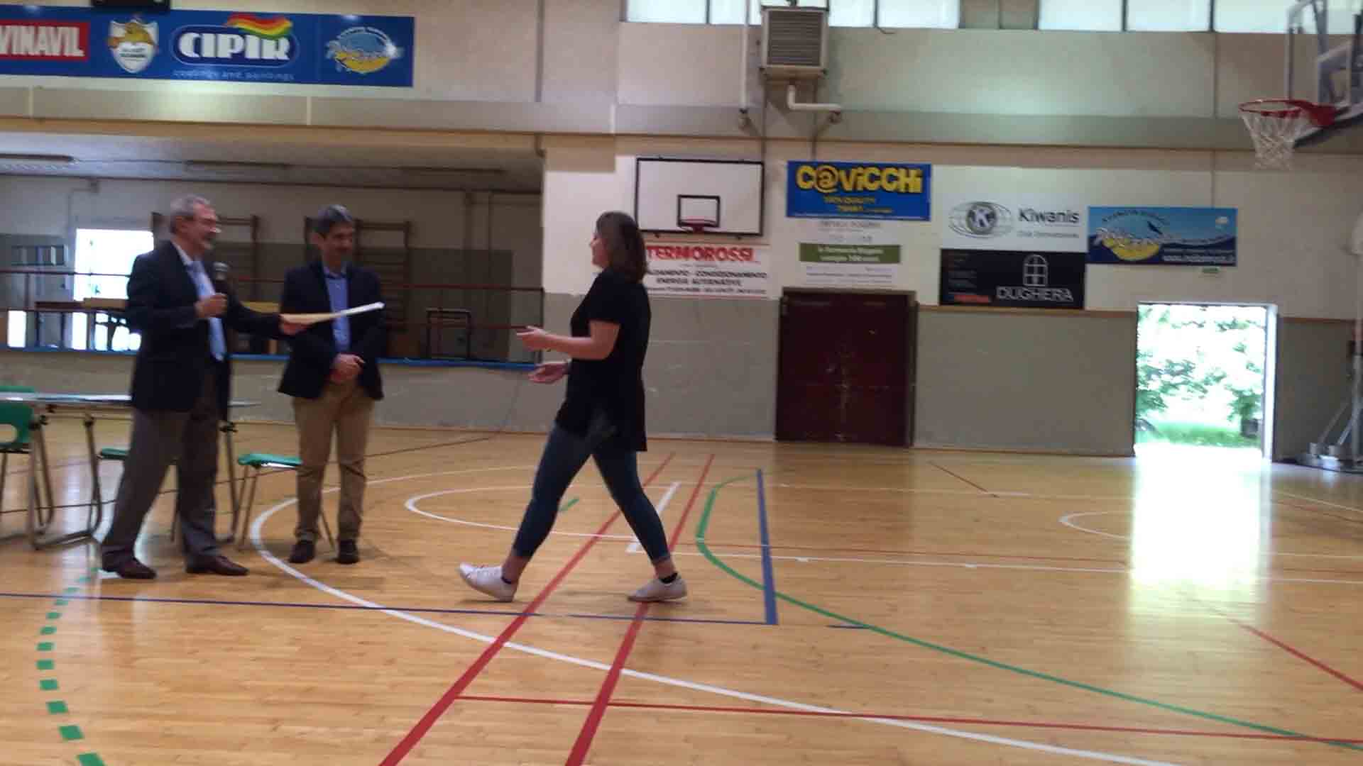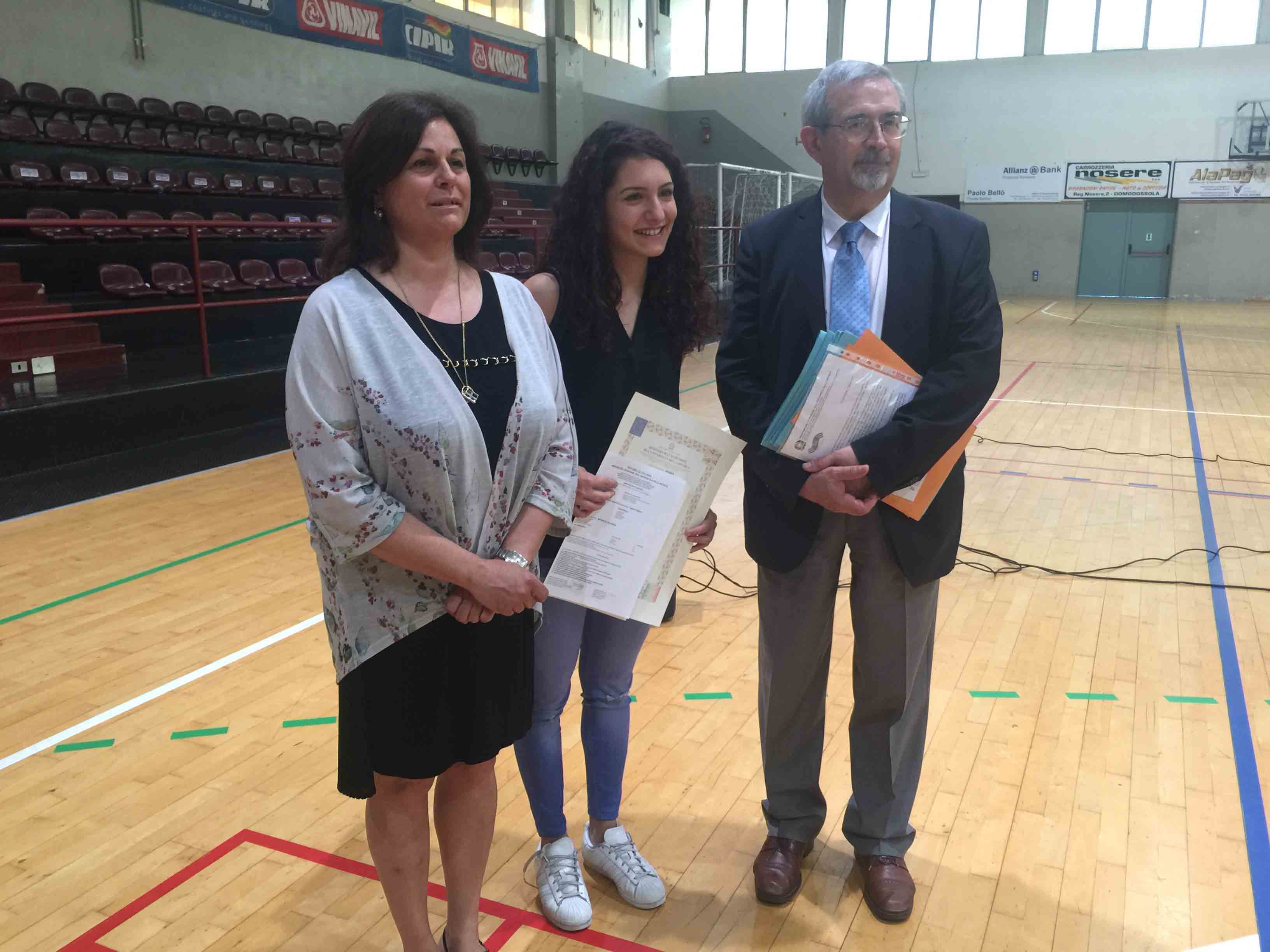 nella mattinata di giovedì scorso ha avuto luogo presso la palestra dell’istituto la consueta cerimonia di consegna dei Diplomi di Esame di Stato e dell’Esabac – il doppio diploma italiano e francese del Linguistico - conseguiti nell’a.s. 2015/2016. In apertura è stata anche consegnato all’ex alunna Veronica Mandica, oggi studentessa a Nizza in Francia, del contributo di studio promosso dalla famiglia e intitolato al professor Angelo Tantardini, per tanti anni docente al linguistico e recentemente scomparso.