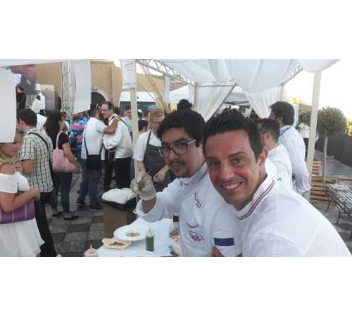 ZAFFERANA E.-13-06-2017 – A Taormina nell'ambito della manifestazione gastronomica “Cibo Nostrum 2017” si è svolta lo scorso fine settimana la grande festa della cucina italiana alla presenza di produttori, giornalisti, critici gastronomici e pasticceri tra i migliori del nostro paese. La manifestazione, a scopo benefico, ha richiamato a sé quasi 20 mila persone e circa 150 chef stellati e non, tra cui lo chef Marco Sacco del Ristorante Piccolo Lago di Mergozzo. Al loro fianco ha lavorato anche quest'anno lo chef emergente ossolano Giorgio Bartolucci; un'occasione per servire circa 500 assaggi lungo una delle vie centrali della città, dove gli appassionati della buona cucina hanno potuto degustare i prodotti tipici del nostro territorio presentati dai nostri chef locali, ed assaggiare cibi dai sapori, gli aromi e colori tra i più disparati.