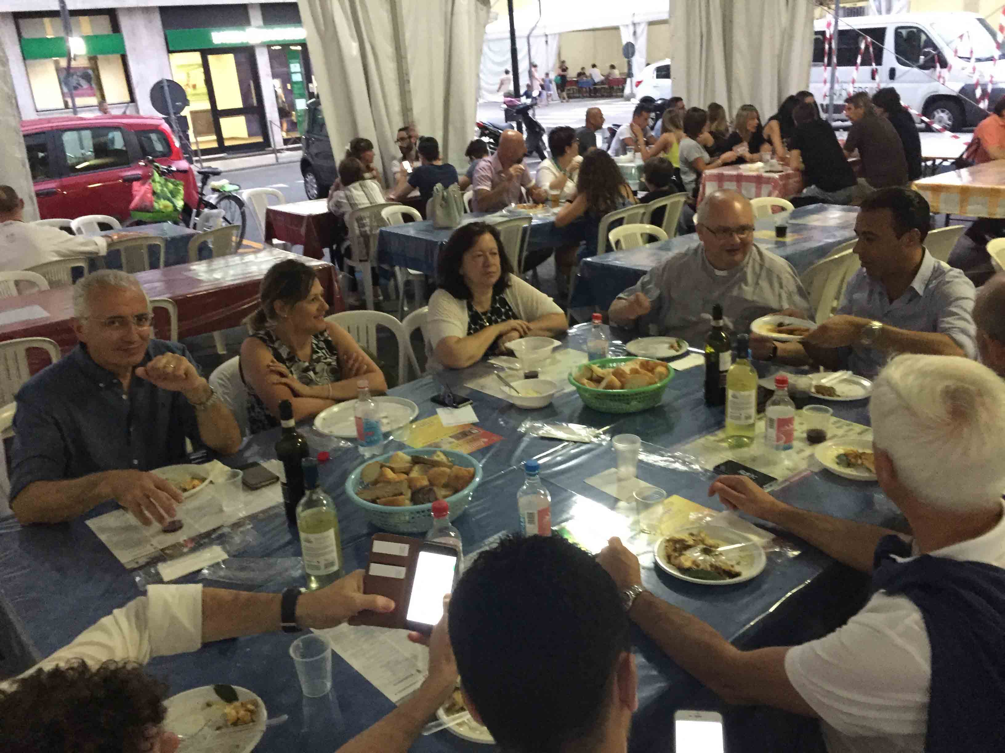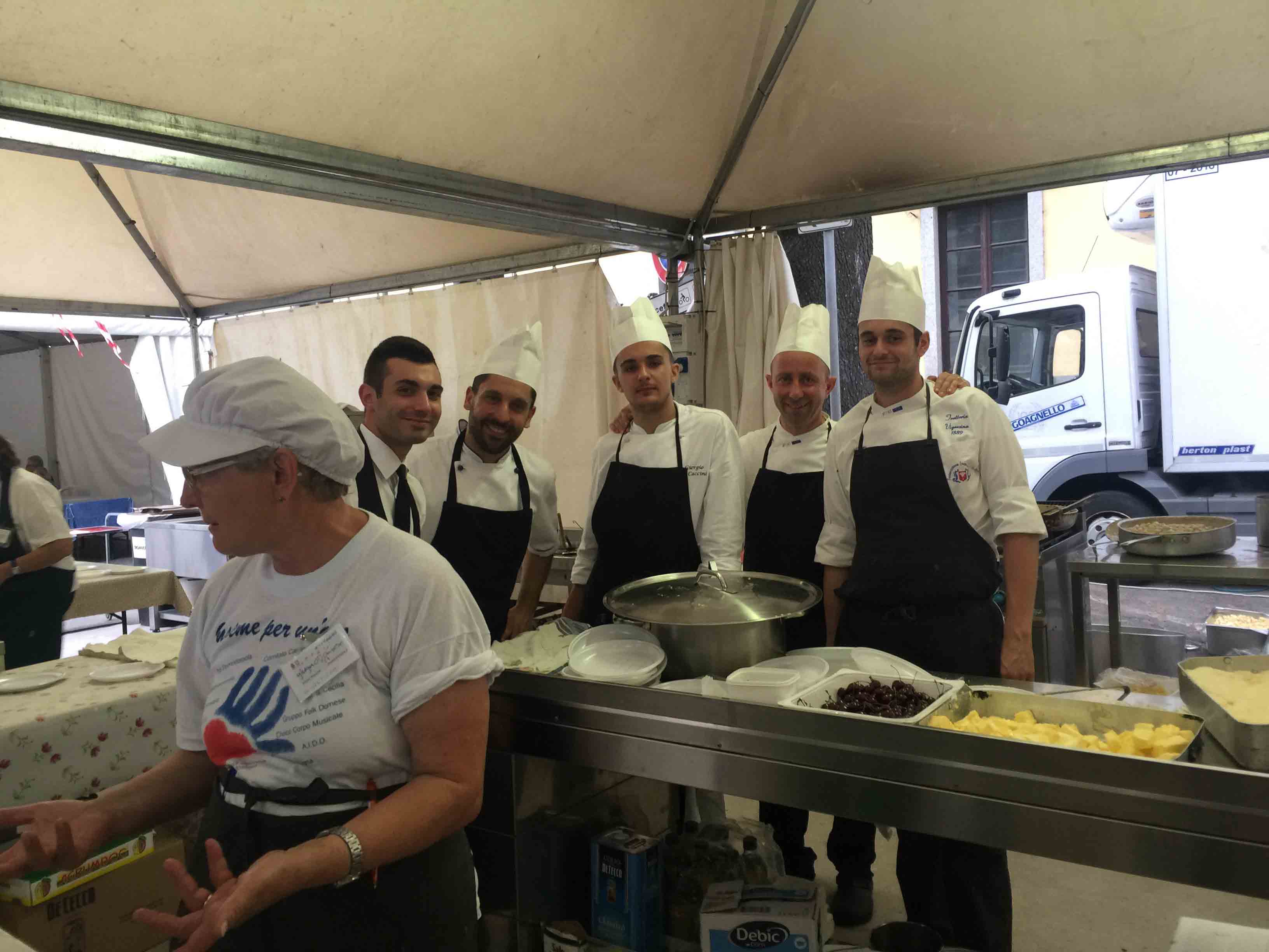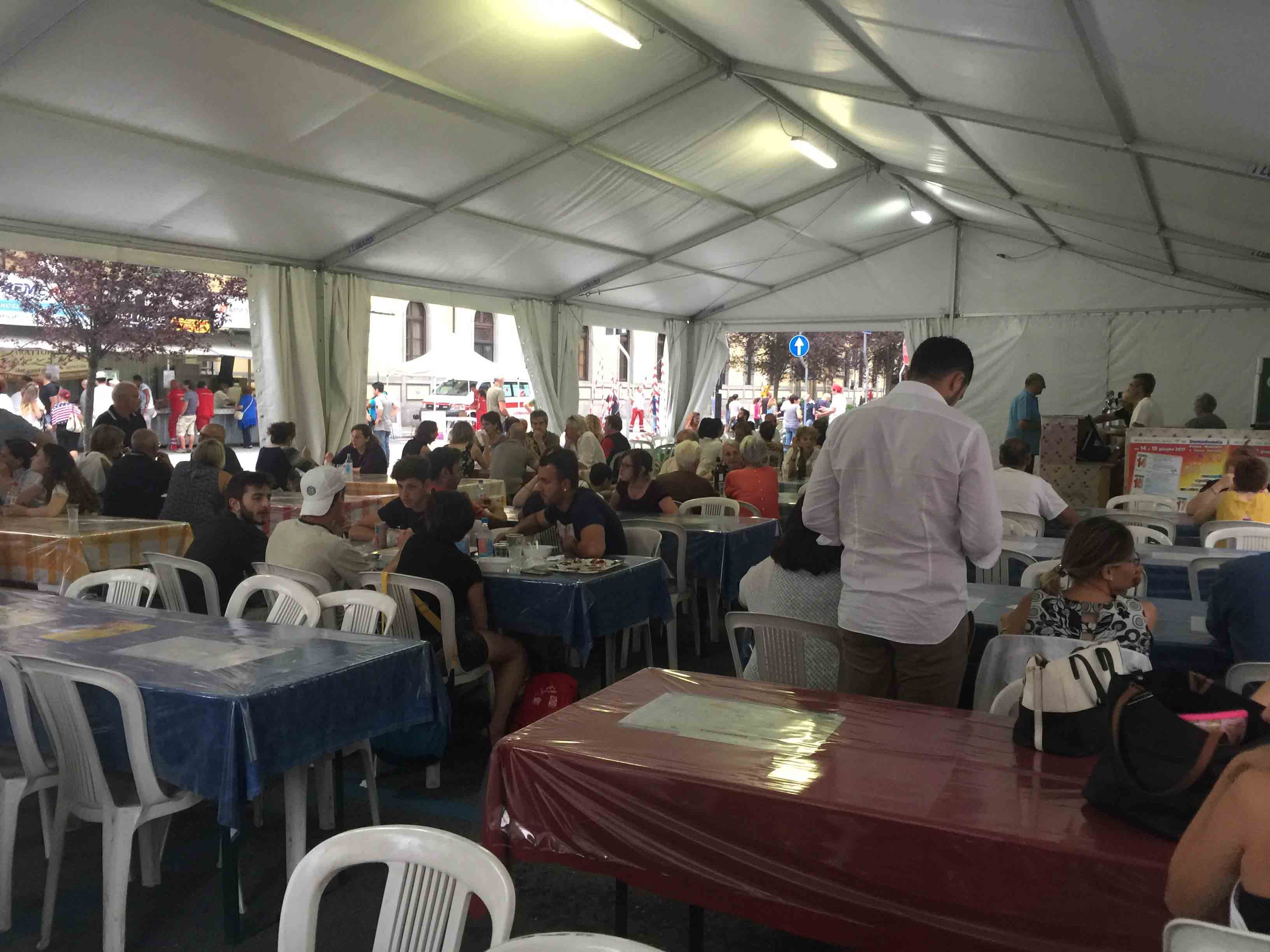 DOMODOSSOLA- 15-06-2017- Il meteo ha resistito sino a dopo cena, poi qualche goccia, mercoledì sera, è caduta su piazza Matteotti per la serata inaugurale del Giugno Domese 2017. Molto apprezzato il menù proposto dalla Trattoria Vigezzina dello chef Andrea Ianni, con la suprema di galletto alla senape su letto di risotto alla toma, degustato anche dalle autorità presenti. La finalità di questa edizione della festa domese è il nuovo arredo delle stanze che verranno create alla casa di riposo domese: “Nel corso degli anni – così il sindaco Lucio Pizzi- il “Giugno Domese”, che coincide con la “Patronale”, ha cambiato diverse volte forma trasformandosi anche in considerazione del momento sociale in cui si è sviluppato: il saper leggere ed interpretare il contesto è, a mio avviso, un elemento chiave che sia gli organizzatori che l’Amministrazione Comunale devono sempre più tenere presente come punto di riferimento per uno sviluppo positivo dell’evento.Ringrazio la Pro Domodossola per aver saputo costruire un programma che spero potrà essere apprezzato da tutti i domesi e dai graditi visitatori, caratterizzato quest’anno in particolar modo dalla valorizzazione della gastronomia locale. Come per i Mercatini di Natale, come per il Carnevale, per citare due manifestazioni cui l’Amministrazione Comunale ha cercato di conferire nuovo risalto, guardiamo con attenzione al “Giugno Domese”: ne valuteremo impatto e risultati per lavorare – con la Pro Domodossola – ad un prodotto sempre migliore. Il mio auspicio è che il “Giugno Domese” sia un evento in grado di regalarci un po' di spensieratezza, un’occasione di divertimento che mi auguro tutti sapranno godere nel rispetto delle diverse sensibilità e del patrimonio comune”.