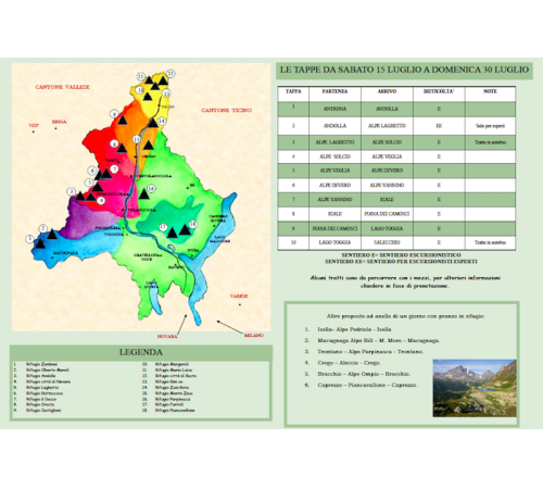 Sei delle dieci tappe previste toccheranno l'alta Valle Antrona, l'Alpe Veglia e l'Alpe Devero.