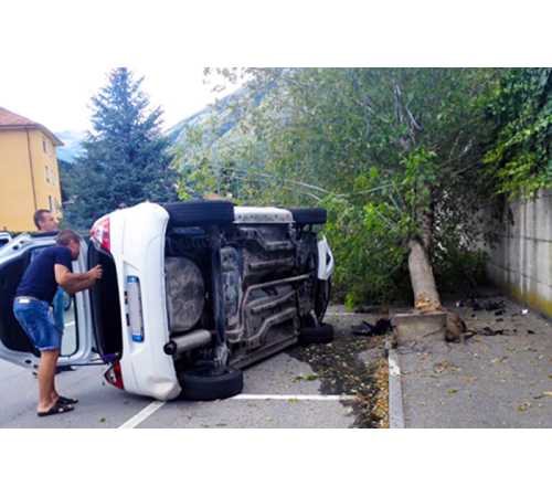Dalla Chiesa a Domo intorno alle 16. Per cause al vaglio della Polizia una Opel guidata da una donna si è scontrata contro uno degli alberi lungo il marciapiede, finendo su un fianco. Illesa la donna, soccorsa dagli automobilisti di passaggio, per lei solo tanto spavento.