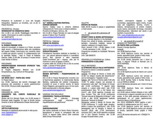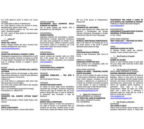 le proposte di svago e divertimento per il fine settimana in Ossola. Eccole tutte per voi grazie all'Ufficio Iat della Pro Domo: