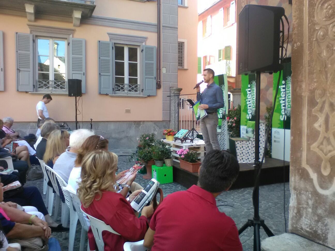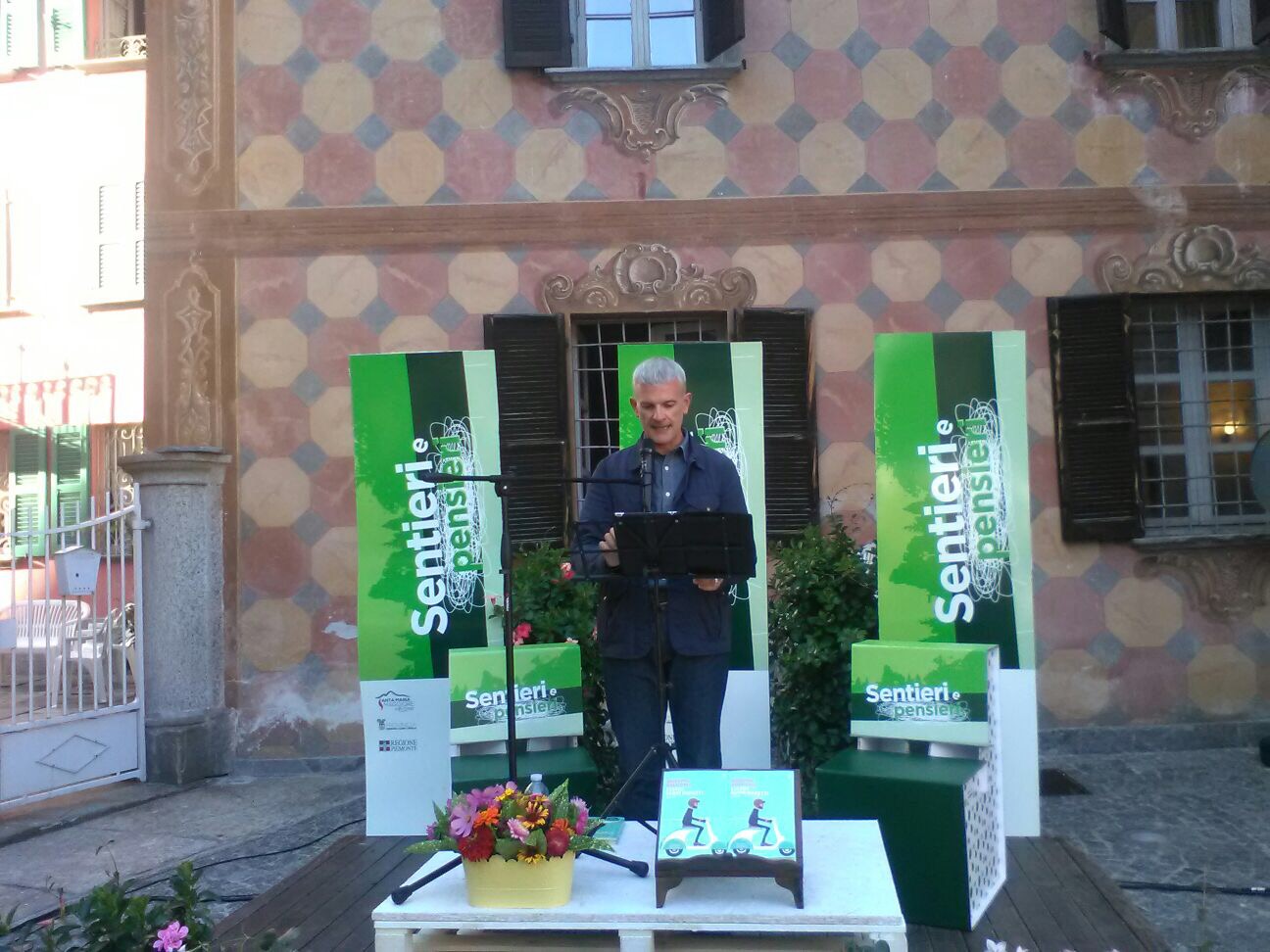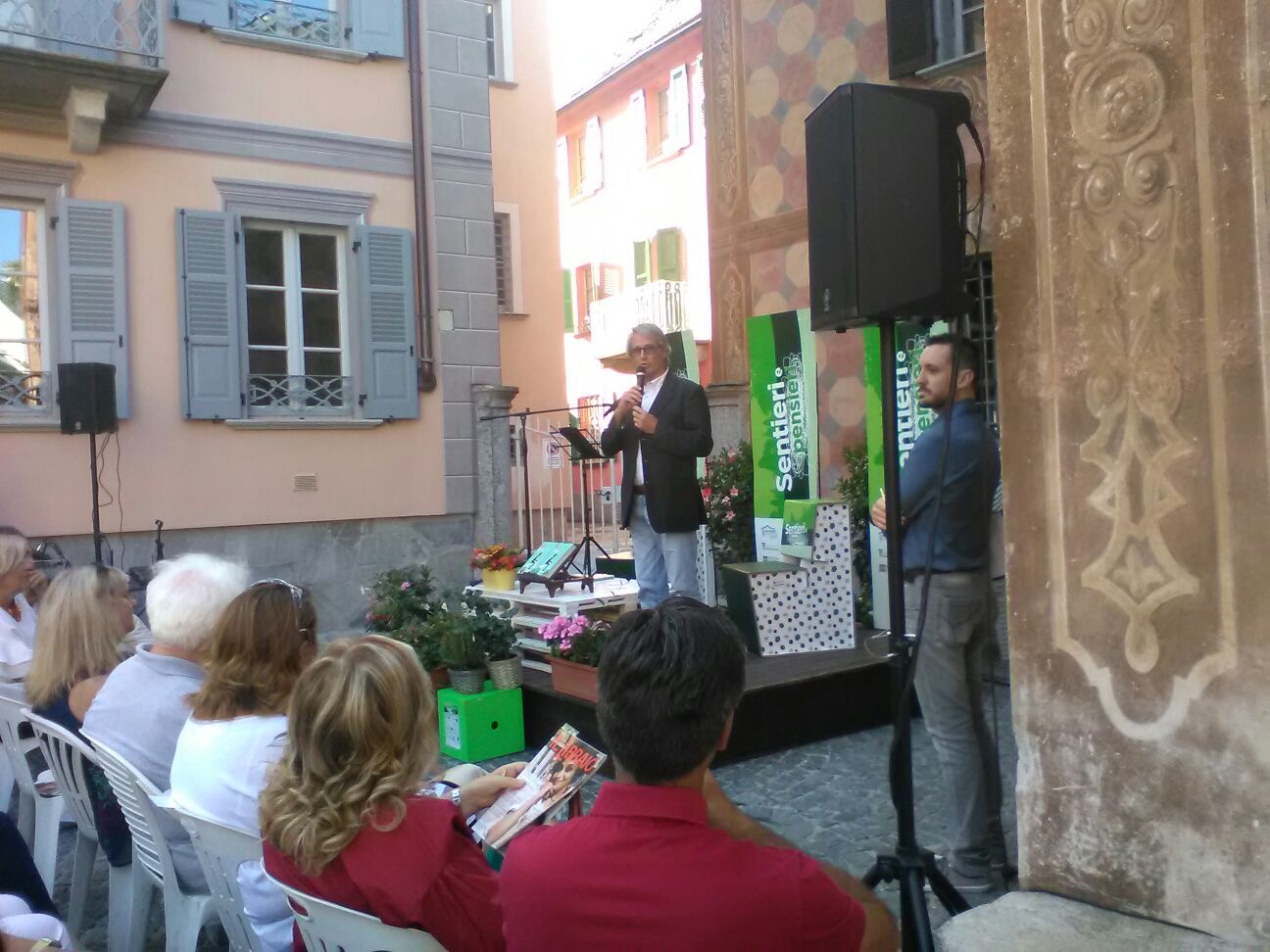 S.M.MAGGIORE- 21-08-2017- Ha preso ufficialmente il via domenica la quinta edizione di "Sentieri e Pensieri", la rassegna culturale diretta da Bruno Gambarotta, che ogni anno ospita in piazza Risorgimento a Santa Maria Maggiore personaggi culturali di fama internazionale. Il festival si è aperto con i saluti del primo cittadino Claudio Cottini, dell'assessore alla cultura della regione Piemonte, Antonella Parigi e del direttore artistico del festival, Bruno Gambarotta. Giuseppe Culicchia, romanziere torinese già ospite di Sentieri e Pensieri nel 2014, è ritornato oggi in Valle Vigezzo con un libro sul sosia del regista e attore Nanni Moretti. Culicchia, autore di " Tutti giù per terra" e " Il paese delle meraviglie" ha presentato al pubblico il suo ultimo romanzo " Essere Nanni Moretti" ( edito da Mondadori) una satira tragicomica del mondo culturale dell'Italia e dei suoi falsi miti. Il libro narra le vicende di Bruno Bruni, un impostore che sbarca il lunario spacciandosi per il celebre regista Nanni Moretti.