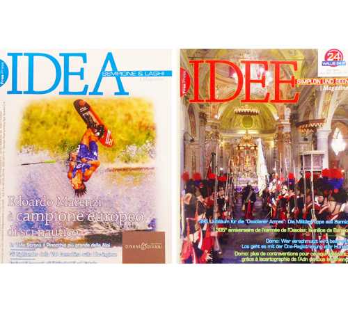 DOMODOSSOLA- 05-08-2017- Nuovo numero settembrino del nostro magazine free press IDEA, con la sua versione in tedesco e francese dedicata ai lettori del Canton Vallese IDEE, in distribuzione nei nostri "ciapasù" di Domo e Verbania, librerie e locali pubblici del Vco ed aronese, oltre che a Briga e Locarno. In copertina dal lato in italiano il giovane e promettente campione di sci nautico Edoardo Marenzi, dal lato svizzero la Milizia di Bannio nel giorno del suo 395° anniversario. All'interno, come sempre, interessanti articoli riguardanti le peculiarità del nostro territorio, e le pagine con le migliori notizie di cronaca degli ultimi giorni. Come sempre, ormai quasi da quattro anni, IDEA/ IDEE si conferma il miglior veicolo promozionale, vero "ambasciatore" dall'altra parte del Sempione.