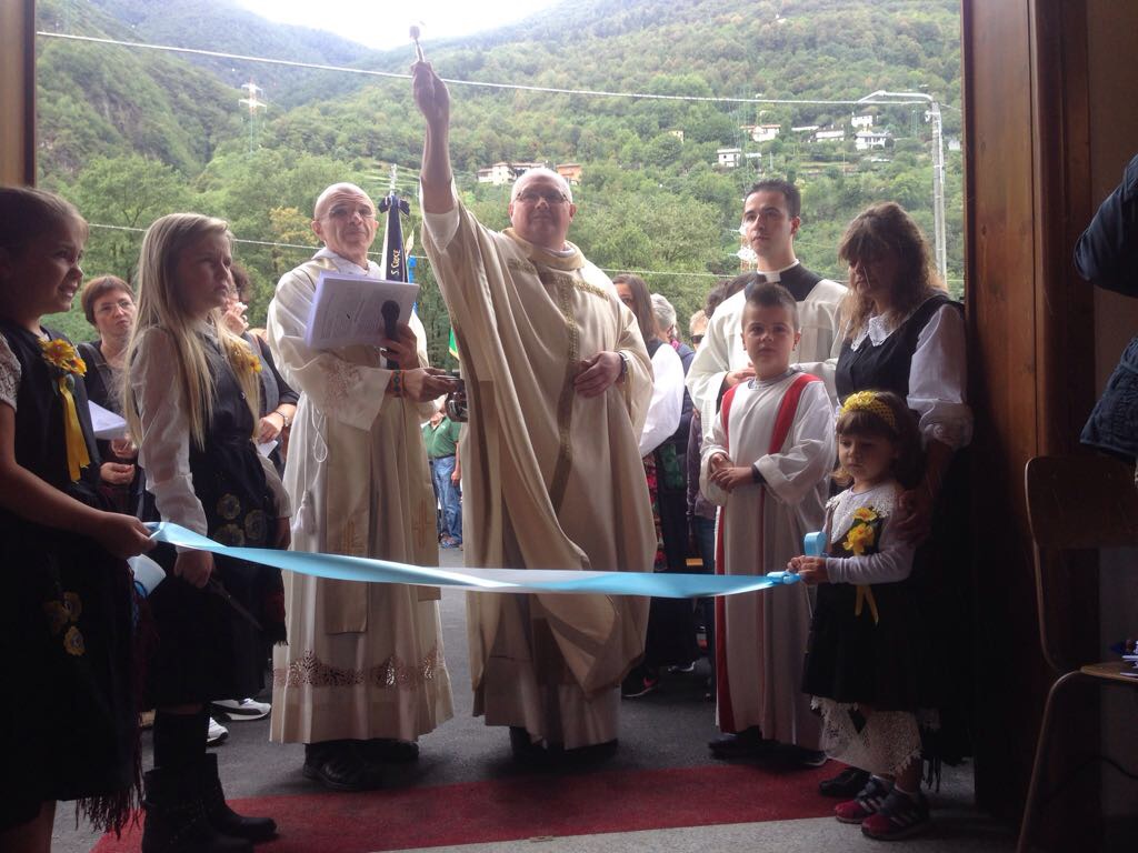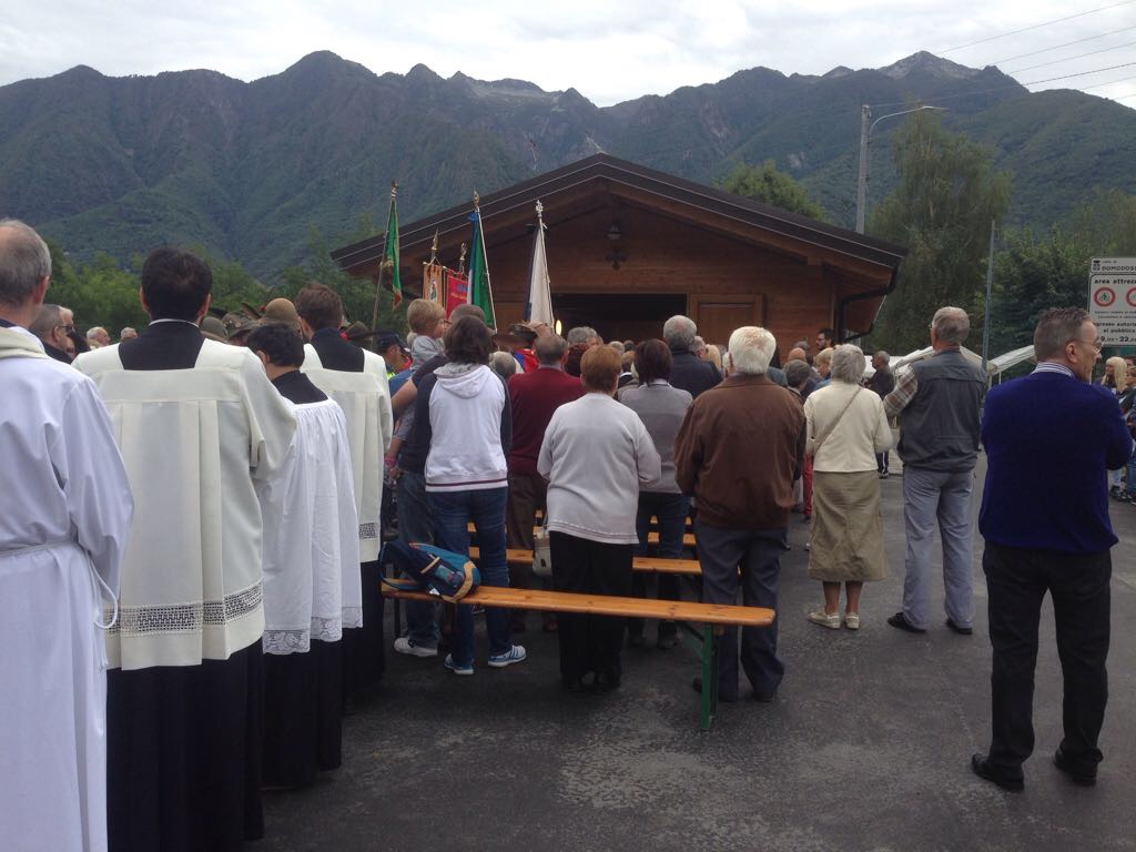 mattina a Gabi Valle per l'inaugurazione e la benedizione della nuova chiesetta in legno sorta in sostituzione di un edificio ormai fatiscente. La messa è stata presieduta dal vicario territoriale don Vincenzo Barone e concelebrata dai padri Rosminiani don Pierluigi Giroli e dal padre generale dei Rosminiani don Vito Nardin. Alla messa erano presenti anche il sindaco di Domodossola Lucio Pizzi, il presidente del consiglio Carlo Valentini, l'assessore ai lavori pubblici Franco Falciola e la consigliera Gabriella Giacomello. Durante la cerimonia è stata rinnovata anche la dedicazione della chiesa a Maria Santissima Madre di Dio. Padre Pierluigi Giroli ha ringraziato per il contributo le diverse associazioni, i gruppi che sono particolarmente legati alla chiesetta e il Comune. “Si potrebbe mettere ad ogni pezzo di legno ad ogni piastrella il nome di una persona- ha detto Padre Giroli – essendo questa chiesa il frutto di tante persone che ci hanno messo il cuore”. Don Vincenzo Barone ha sottolineato l'importanza della chiesa che non è costituita solo dai muri ma anche dalla comunità dei fedeli ed infine ha indicato Maria come modello perfetto per la vita cristiana. Dopo la messa animata dalla corale di Calice è seguito l'incanto delle offerte, l'aperitivo preparato dal gruppo alpini di Calice e dall'Avis e il pranzo.