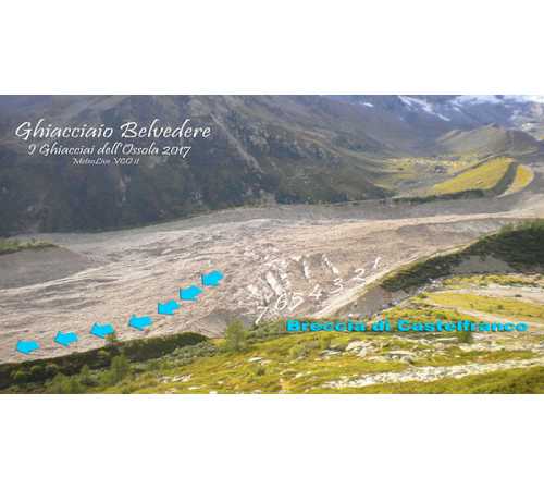 MACUGNAGA- 15-09-2017- La lingua di ablazione del ghiacciaio Bewlevedere di Macugnaga, un enorme blocco di ghiaccio ricoperto di detriti, mostra i primi crepacci da frammentazione. E' quindi molto pericoloso attraversarlo: "In prossimità della breccia di Castelfranco- spiega Luca Sergio di Meteolivevco.it- la lingua di ablazione mostra dei crepacci trasversali, questi crepacci solitamente si hanno su un ghiacciaio o sulla fronte o in prossimità di un dosso roccioso, il ghiacciaio prendendo velocità sulla parte in discesa del dosso si frammenta a monte".