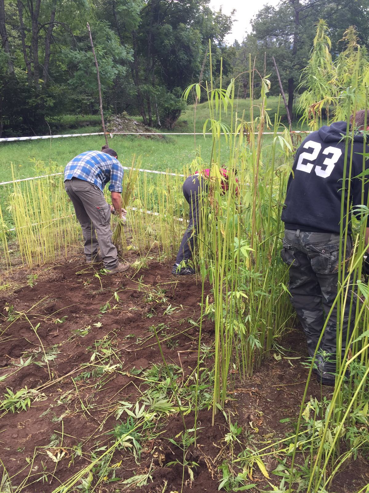 Maren Krings, collaboratrice anche del prestigioso National Geographic, alla “Festa del raccolto” che si è svolta presso l'azienda agricola La Chanvosa a Croveo di Baceno domenica 17 settembre. Evelina e Fabrizia Felisatti, dell'azienda agricola La Chanvosa vogliono reintrodurre la coltivazione della canapa sativa con la vendita diretta dei prodotti da essa derivanti, come ci racconta Evelina Felisatti: “Maren mi ha contattata la scorsa primavera per questo reportage sulla canapa che sta realizzando, con la possibilità di pubblicazione sul National Geographic, e di cui vorrebbe anche fare un volume. Ha avuto il mio contatto tramite il Segretario Generale della Convenzione delle Alpi Markus Reiterer, da cui ero stata premiata nel 2014 per la mia tesi di laurea, appunto sulla canapa. Da allora intanto avevamo iniziato a realizzare dei campi a Baceno, con prove di autoconsumo di prodotti da forno. Maren si è incuriosita ed è venuta a trovarci questa primavera per qualche scatto, e, sempre nell'ambito del reportage in realizzazione, domenica ha partecipato alla festa del raccolto. Al momento abbiamo fondato una società agricola, stiamo effettuando il raccolto, ma siamo state bloccate dall'Asl per problemi di altezze sui locali di trasformazione del prodotto. Stiamo cercando di superare questo scoglio e speriamo di poter operare per il periodo natalizio, coltivando e trasformando la canapa, portandola dal campo alla tavola. L'idea è di utilizzarla in tutte le sue parti, ci stiamo attivando per utilizzi diversi nel futuro, che non siano solo alimentari ma che ne utilizzino anche le fibre”. Ci dice Maren Krings, che oltre che per il National Geographic collabora anche con diverse testate in Germania ed in Austria: “la mia ricerca sulla Canapa è partita dalla Slovenia attraverso tutta l'Europa; ho iniziato il lavoro circa un anno fa, e ho realizzato che poteva diventare qualcosa di importante per i mille utilizzi del prodotto che sto pian piano mettendo insieme, appunto che spaziano dalla produzione alimentare all'uso medicale. Il progetto di Evelina e di sua sorella Fabrizia è estremamente interessante, avevo fatto delle fotografie a marzo e sono tornata domenica per degli scatti sui campi in crescita”.