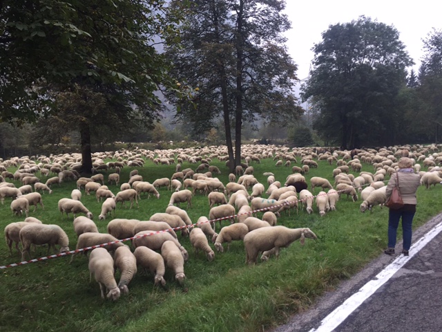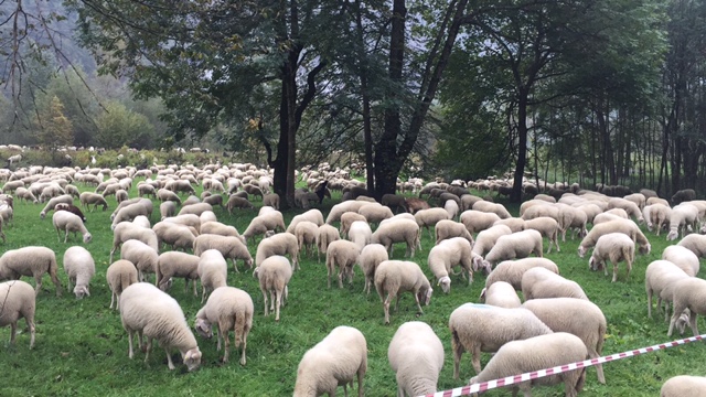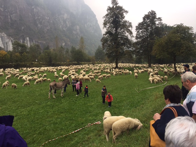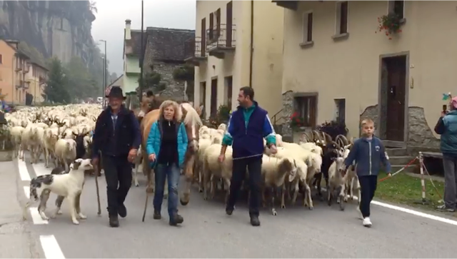 PREMIA- 30-09-2017- Tanta gente ad ammirare il passaggio di oltre 3000 ovini per la 13^ edizione di “Tempo di migrar”, spettacolare e inconsueto rituale della transumanza che termionerà sabato notte con l'arrivo a Crodo delle greggi. Nel pomeriggio gli ovini sono giunti in frazione Cadarese dove, davanti a numerosi bambini, si sono effettuate le dimostrazioni di lavorazione, pettinatura e cardatura della lana e del feltro e le operazioni di tosatura delle pecore. Dopo cena la sfilata del gregge che giungerà nell'abitato di Premia verso la mezzanotte. Per consentire il deflusso delle auto dirette verso la valle, il gregge sosterà mezz'ora nel centro cittadino mentre, coloro che vorranno fare le ore piccole, potranno anche accompagnare a piedi il gregge. L'arrivo a Crodo è previsto per le 3.00 del mattino.