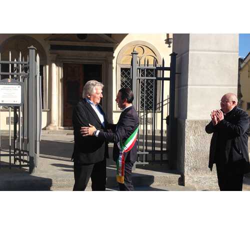 DOMODOSSOLA- 06-04-2018- La visita del mecenate svizzero Léonard Gianadda al santuario della Madonna della Neve per celebrarne la fine dei lavori che hanno visto il rifacimento delle facciate, ha aperto la giornata inaugurale dell'esposizione della celeberrima scultura "Le baiser " proveniente dalla Fondazione Pier Gianadda di Martigny. Gli interventi di restauro sono stati resi possibili grazie al contributo economico di oltre 130.000 euro stanziato da Gianadda, già cittadino onorario domese, il quale ha espresso soddisfazione per l'adempimento dei lavori che hanno riportato la chiesa alla sua antica bellezza. " è una giornata importante per la nostra città. Il santuario restaurato è stato restituito alla città da questo uomo straordinario, Léonard Gianadda. È un luogo del cuore oltre che simbolo di spiritualità. Il restauro conservativo è stato fatto nel rispetto dei materiali storici della chiesa sotto la supervisione della soprintendenza" ha spiegato nel suo intervento, il sindaco Lucio Pizzi. Gianadda, assai emozionato ha ricordato come tutto è iniziato con l'inaugurazione della fontana, e da lì l'idea di restaurare la facciata della chiesa. Il benefattore ha anche pensato al nonno che nella strada dal Piemonte alla Svizzera che percorse a piedi a 13 anni nel 1886 passò probabilmente di lì. " Questo é il cuore Mariano della nostra città. Un luogo significativo della nostra città che è bello rivedere ai suoi splendori iniziali. La tinteggiatura ha portato alla luce i colori originari sia delle facciate laterali sia del dipinto" ha aggiunto don Vincenzo Barone. Gianadda e le autorità si sono poi spostati a Palazzo San Francesco per il taglio del nastro della mostra organizzata dalle Fondazioni Ruminelli e Gianadda a cui hanno collaborato l'associazione Mario Ruminelli e il comune di Domodossola.