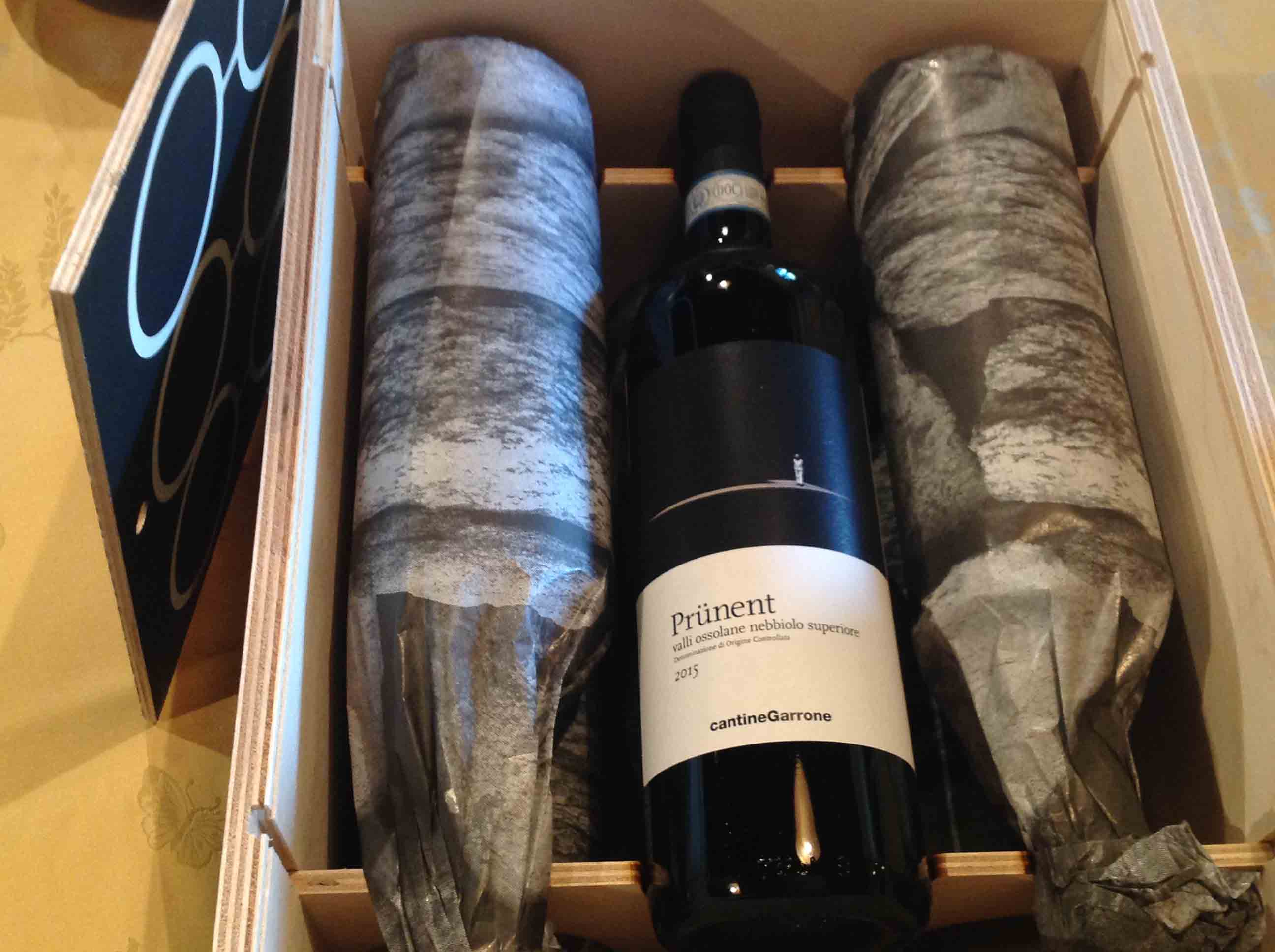 Matteo Garrone, enologo e fratello di Marco precisa: "Questo vino è un rosso tradizionale dell'Ossola, fa una macerazione non molto lunga, come da tradizione locale, poi resta fino all'estate in acciaio e quindi passa un anno nelle botti di Cà d' Matè e infine raffinato in bottiglia. Il tannino del Prünent non è aggressivo, ma nemmeno troppo morbido: è un vino di montagna che si abbina con formaggi, salumi e carni. " Le 200 bottiglie di Prünent prodotte con la particolare etichetta firmata da Croppi si troveranno una per cassa, nelle casse da sei bottiglie, riservate alla ristorazione principalmente locale. Il totale di bottiglie prodotte in quest'annata di Prünent sono circa 5.000. Il vino delle cantine Garrone è frutto della vinificazione di uve provenienti da diversi viticoltori ed è importante anche il lavoro dell'APAO ( Associazione Produttori Agricoli Ossolani) che aiuta e coordina i viticoltori in modo da ricavare i frutti migliori.