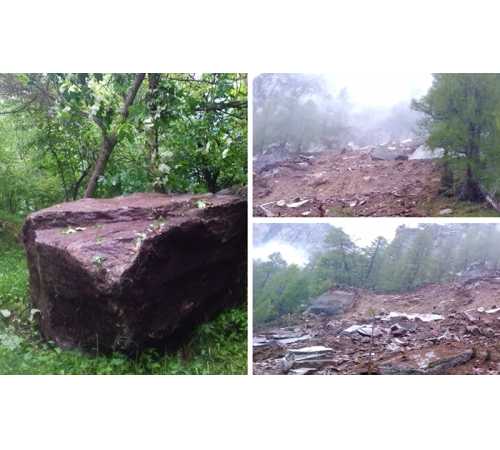 TRASQUERA-04-06-2018- Nessun ferito, e danni solo ad una delle due captazioni dell'acquedotto ed alle strade sterrate per gli alpeggi. Questo il bilancio della grossa frana caduta stamane intorno alle ore 7,30 a Bugliaga, oltre la frazione di Trasquera e verso la Svizzera: “Un nostro cittadino- spiega il sindaco Arturo Lincio- ha assistito al distacco ed alla frana, era anche abbastanza vicino alle rocce ed alla terra che scendevano rovinosamente a valle. Per fortuna non è stato coinvolto ed ha dato subito dato allarme. A parte quello all'acquedotto ed alle strade degli alpeggi non ci sono stati altri danni o feriti, almeno dalle risultanze sinora. Certo è una frana eccezionale per vastità ed ampiezza, con blocchi di sasso grossi come due o tre auto, che non ci stanno neanche sul camion, che hanno travolto tutto cadendo. Per fortuna la frana ha avuto una evoluzione in canaloni esistenti, senza coinvolgere centri abitati o la strada asfaltata”. Nel pomeriggio, quando le condizioni meteo sono migliorate, c'è stato il sorvolo con l'elicottero del geologo comunale, e poi si è riunita una commissione in comune per fare il punto della situazione. Domani le relazioni del tecnico, nel frattempo tutta l'area è stata isolata.