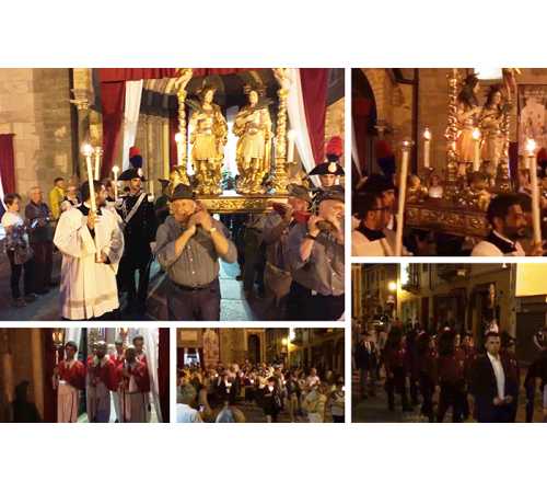 che martedì sera hanno partecipato alla tradizionale processione per la festa patronale domese in onore dei santi Gervasio e Protasio. Dopo la Santa Messa officiata dal vicario vescovile ossolano, e parroco di Domo, don Vincenzo Barone, che si è rivolto principalmente ai giovani ed al loro contributo per migliorare la società, è stato fatto uno scambio di doni col sindaco Lucio Pizzi, e sono stati onorati due collaboratori della Parrocchia con una targa. Ai presenti in collegiata è stato distribuito un opuscolo sui due santi Patroni. Poi è partito il lungo corteo con la statua dei Santi, che è stato portato dagli alpini per le vie cittadine. In processione oltre ai numerosissimi fedeli e religiosi anche la confraternita di Santa Marta, la banda cittadina, i gruppi folk, il sindaco Lucio Pizzi con diversi componenti della giunta, e le autorità militari locali. Variato il percorso della processione nelle vie domesi rispetto agli anni scorsi, quando si terminava in piazza Stazione, con la novità della benedizione alla città impartita dal parroco don Vincenzo Barone sotto il cedro di piazza Chiossi.
