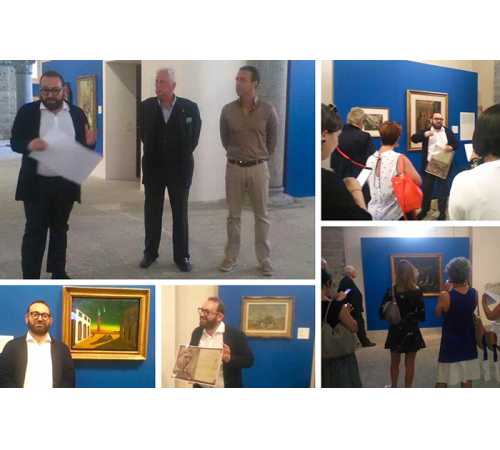 DOMODOSSOLA- 12-07-2018- La duecentesca chiesa-museo di Palazzo San Francesco è pronta per accogliere, a partire dalla serata di sabato 14 luglio, fino al 31 ottobre, quanti vorranno ammirare le opere d'arte dei grandi maestri De Chirico e De Pisis con 40 opere provenienti da prestigiose collezioni private italiane ed estere e da alcune fondazioni. Questa mattina in esclusiva per i giornalisti, la mostra è stata presentata in anteprima dallo stesso curatore Antonio D'Amico, neoconservatore delle Raccolte d'Arte del Comune. D'Amico, il quale da circa sette mesi sta lavorando per realizzare la mostra, ha fatto una sensazionale scoperta, riguardo ad un'opera esposta, "Vita silente" , olio su tela degli anni '50 di De Chirico. "Quando le opere arrivano nei musei, noi storici dell'arte facciamo una "condition report" ossia una sorta di scheda sanitaria dell'opera. Durante l'allestimento ho voltato il dipinto e mi sono reso conto che in realtà De Chirico ha dipinto questa tela all'antica, secondo il metodo seicentesco, e questo metodo l'artista lo ha schematizzato sulla tela attraverso delle note tecniche e di fianco ha dipinto il suo autoritratto. Quindi a Domodossola abbiamo da una parte questa bellissima natura silente e sul retro l'autoritratto che si potrà vedere solo sul catalogo della mostra" spiega D'Amico.
