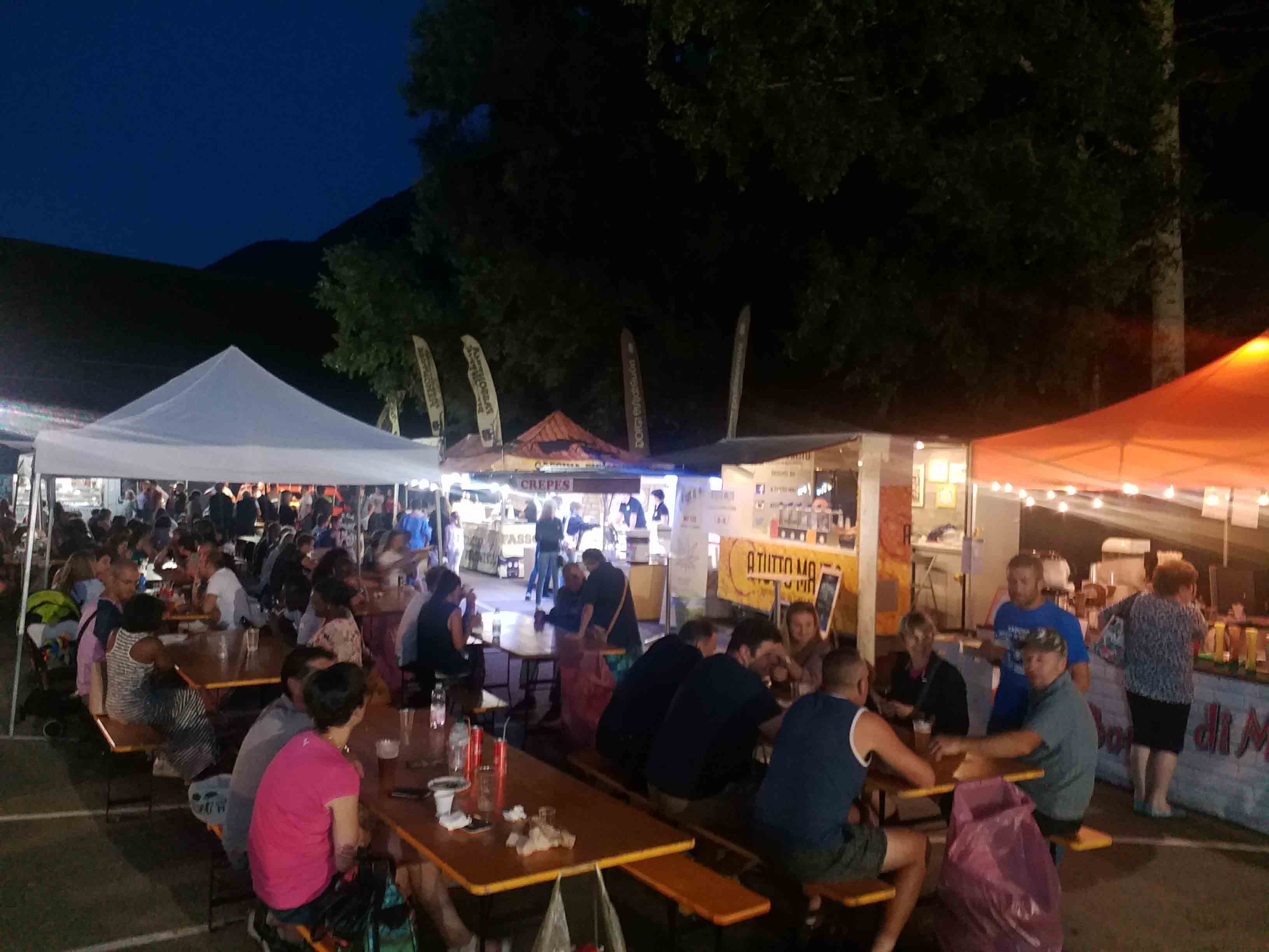 DRUOGNO-30-07-2018 - Evento riuscito la seconda edizione dello street food "Assaggia l'Italia e birriamo" a Druogno. Da venerdì 27 a domenica 29 luglio nel piazzale antistante il centro sportivo sono stati allestiti tavoli e panche attorniate da tanti furgoncini che proponevano gustose specialità della Penisola. I pomeriggi di sabato e domenica sono stati dedicati principalmente ai bambini con spettacoli d'animazione e trucca-bimbi con le Guastafeste, invece la sera agli adulti con ogni sera uno spettacolo differente. Venerdì concerto blues rock con la Fabio Marza band, sabato musica country e lezioni di ballo con le Briglie sciolte, infine domenica sera cover pop rock con Lilhium acustic duo. La manifestazione è stata organizzata dall'Associazione Eventi Experience. Il sempre attivo gruppo degli alpini si è occupato della logistica.
