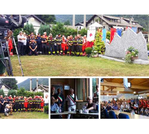 VIGEZZO- 07-08-2018- 7 agosto 1978 - 7 agosto 2018. Nel quarantesimo anniversario della tragica alluvione che spezzò sette vite umane, sfregiando la Valle Vigezzo, questo pomeriggio presso la sala conferenze dell'Unione Montana della Valle Vigezzo a Santa Maria Maggiore i sette comuni colpiti hanno ricordato l'evento. Craveggia, Druogno, Malesco, Re, Santa Maria Maggiore, Toceno, Villette erano presenti con i loro sindaci insieme alla rappresentanza delle autorità civili e militari e i volontari di tutti gli enti di Soccorso. Tra i presenti anche il geologo Vincenzo Coccolo, lo scrittore Benito Mazzi e altre personalità che hanno vissuto l'evento.Nel corso della sentita e partecipata cerimonia il presidente della Fondazione Comunitaria del Vco, Maurizio De Paolo ha annunciato l'acquisto del nuovo mezzo per i vigili del fuoco con un importante stanziamento di denaro pari ad oltre 160.000 euro raccolto anche grazie ai Rotary, oltre che attraverso il Fondo per le infrastrutture montane depositato presso la Fondazione Comunitaria.