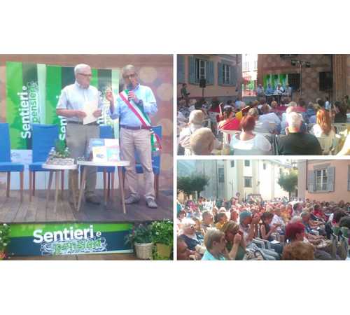 S.MARIA MAGGIORE- 22-08-2018- Con la cittadinanza onoraria di Santa Maria Maggiore conferita dal sindaco Claudio Cottini ad un commosso Benito Mazzi, per aver contribuito con i suoi scritti a dare lustro alla Valle Vigezzo a livello internazionale, si é aperto martedì 21 agosto il secondo pomeriggio di " Sentieri e Pensieri" la rassegna di letteratura e spettacolo in programma fino al 25 agosto. Lo scrittore e giornalista vigezzino era protagonista sul palco insieme al direttore artistico del festival Bruno Gambarotta, al presidente dell'Ordine dei Giornalisti del Piemonte Alberto Sinigaglia e ad Andrea Raimondi, autore di uno studio sul multilinguismo degli scrittori piemontesi. Il tema del partecipato incontro era " Libri, scritture e scrittori del Piemonte" argomento dalle molteplici sfaccettature, essendo il Piemonte terra feconda di letteratura. Si è discusso ampiamente dello stato di salute della scrittura e in particolare della letteratura piemontese nel contesto di un generale impoverimento culturale e di un decadimento del numero di lettori, ma anche dell' importanza della veridicità della diffusione delle notizie e dell'attenzione alla verifica delle fonti per quanto concerne la professionalità del giornalista. Di rilievo anche la considerazione espressa da Sinigaglia, sulla assoluta necessità e quindi l'importanza del ruolo del giornalista specialmente in un'epoca come quella che stiamo vivendo.