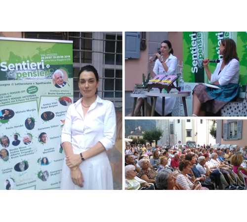 S.MARIA MAGGIORE- 23-08-2018- Entra nel vivo la sesta edizione del festival di letteratura e spettacolo " Sentieri e Pensieri" in programma in questi giorni nella perla della Valle Vigezzo. Nel pomeriggio del 22 agosto sul palco allestito in piazza Risorgimento, la giornalista e conduttrice televisiva e radiofonica, Natascha Lusenti, ha presentato il suo romanzo d'esordio " Al mattino stringi forte i desideri " ( Garzanti). Un libro che invita a guardare la vita da una nuova prospettiva e narra la storia della timida e sola Emilia, la quale, dopo aver smarrito le redini della propria vita, si ritrova alle prese con una nuova casa in un condominio e dei nuovi inquilini da conoscere e soprattutto con la convinzione che occorre voler bene ai propri pensieri perché come le diceva il padre, i pensieri, specie quelli del mattino rappresentano una nuova speranza. Perché a volte ci si dimentica che il bello della vita sta nelle cose semplici viste magari attraverso gli occhi di un bambino. Da sei anni la popolare conduttrice è una delle voci dell'alba di Radio2 Rai e apre la sua trasmissione con i " Risvegli " .