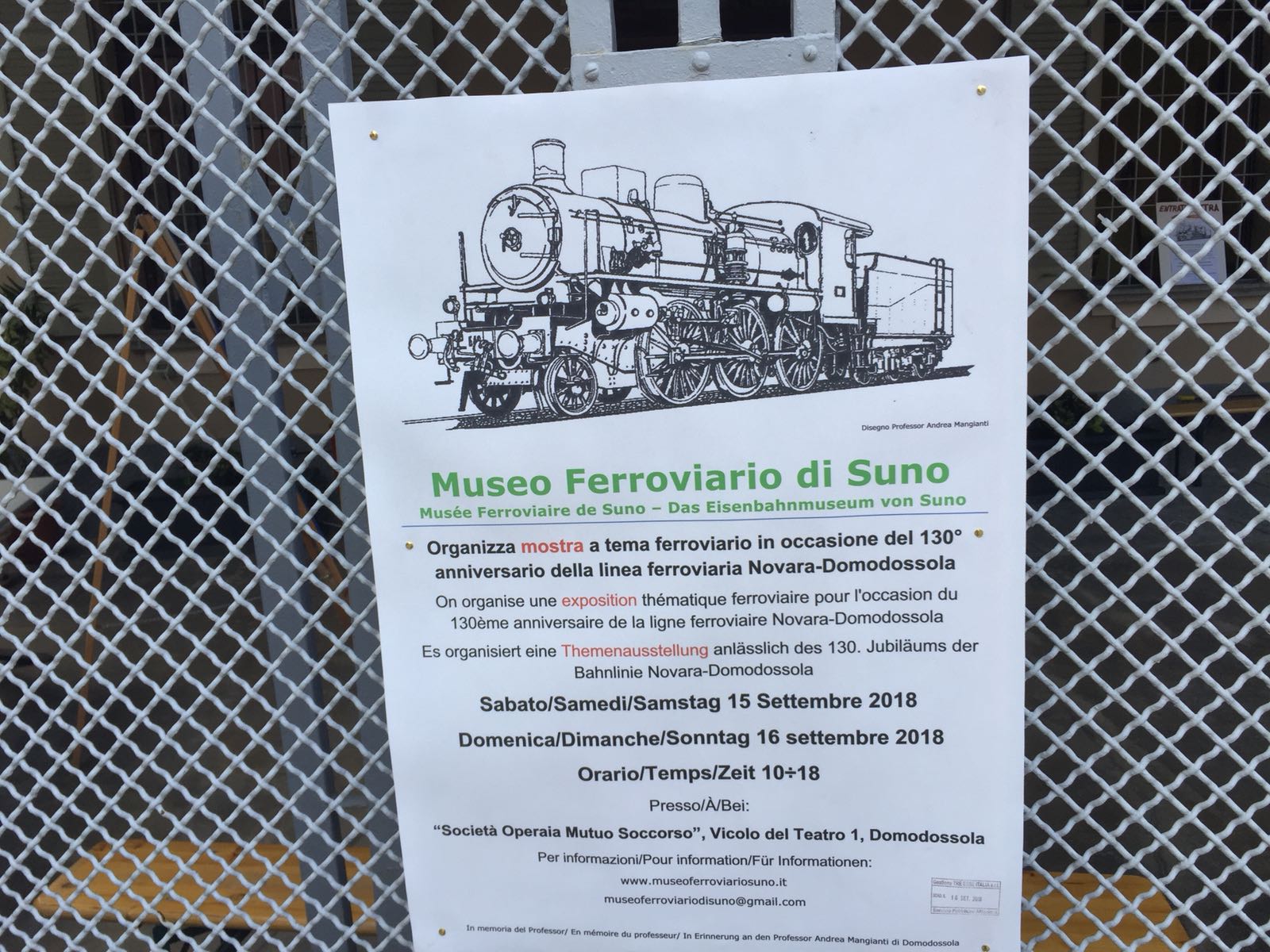 a Domo di domenica mattina verso le 11,30 del trenino a vapore della storica linea ferroviaria Novara- Domodossola la Società Operaia di Mutuo Soccorso domese ospita nella propria sete di via teatro la mostra dedicata all completamento della tratta ferroviaria Novara – Domodossola: “In esposizione- spiegano i promotori- abbiamo anche la storia delle ferrovie vicine alla linea Novara- Domodossola. L'esposizione, sarà aperta sino a domenica con orario continuato dalle ore 10 alle ore 18”.