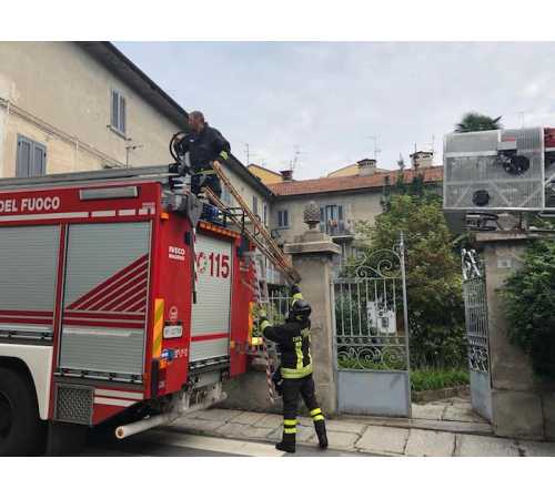 in via Scapaccino. Qualcuno ha avvisato i Vigili del fuoco segnalando che un anziano solo in casa non dava segno di sé. I VVF sono intervenuti e con l'autoscala hanno raggiunto il primo piano del palazzetto. Effettivamente l'anziano non dava segni della sua presenza, né poteva darli visto che si trovava fuori casa.